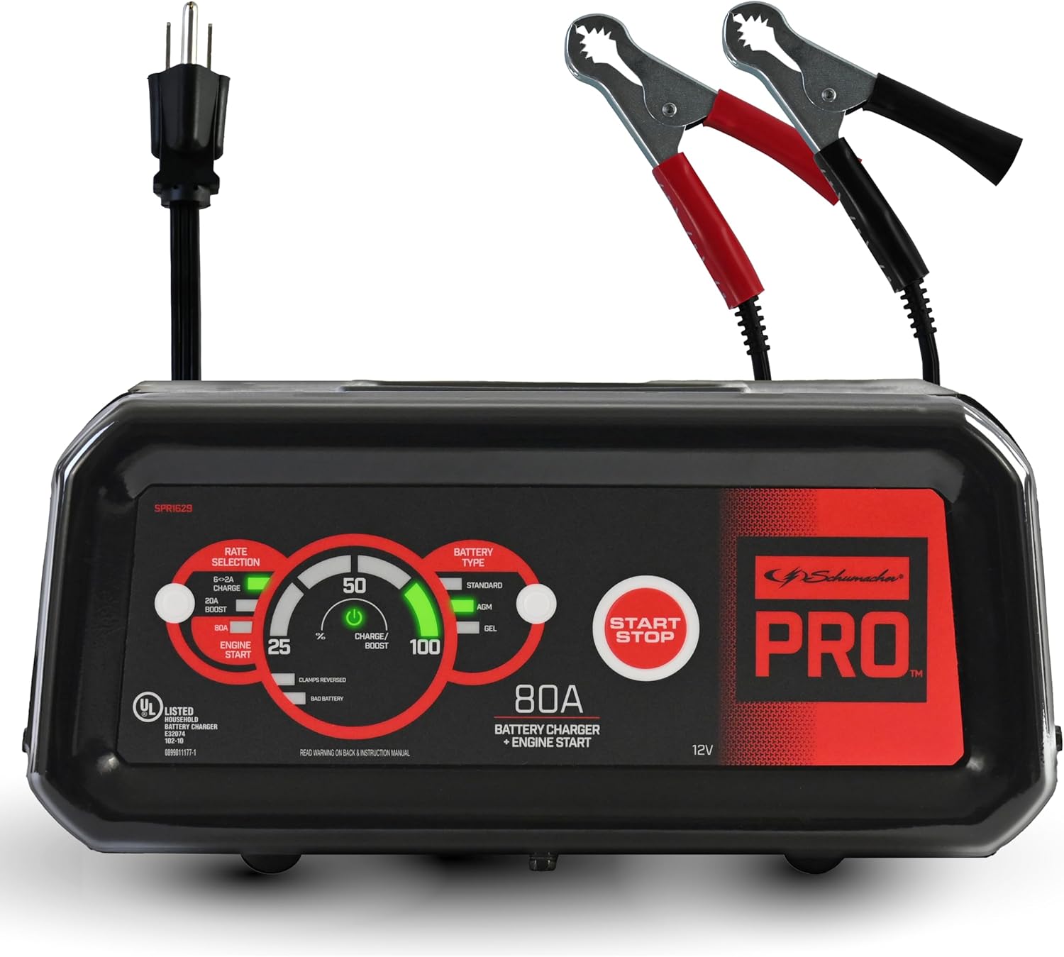 Schumacher Electric 6A Car Battery Charger and 80A Engine Starter, 4-in-1 Solution, Maintainer, 20A Boost, for 12V Power Sport, Automotive, and Marine Batteries, SPR1629