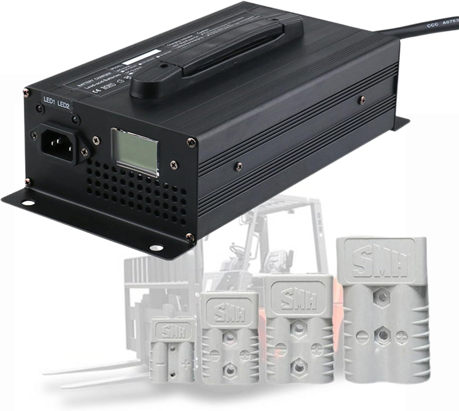 48V 25A Lead Acid Battery Charger 1500W Battery Charger Forklift Battery Charge Car Battery Charger Trickle Charger with LED Display 50A Anderson Plug,Black
