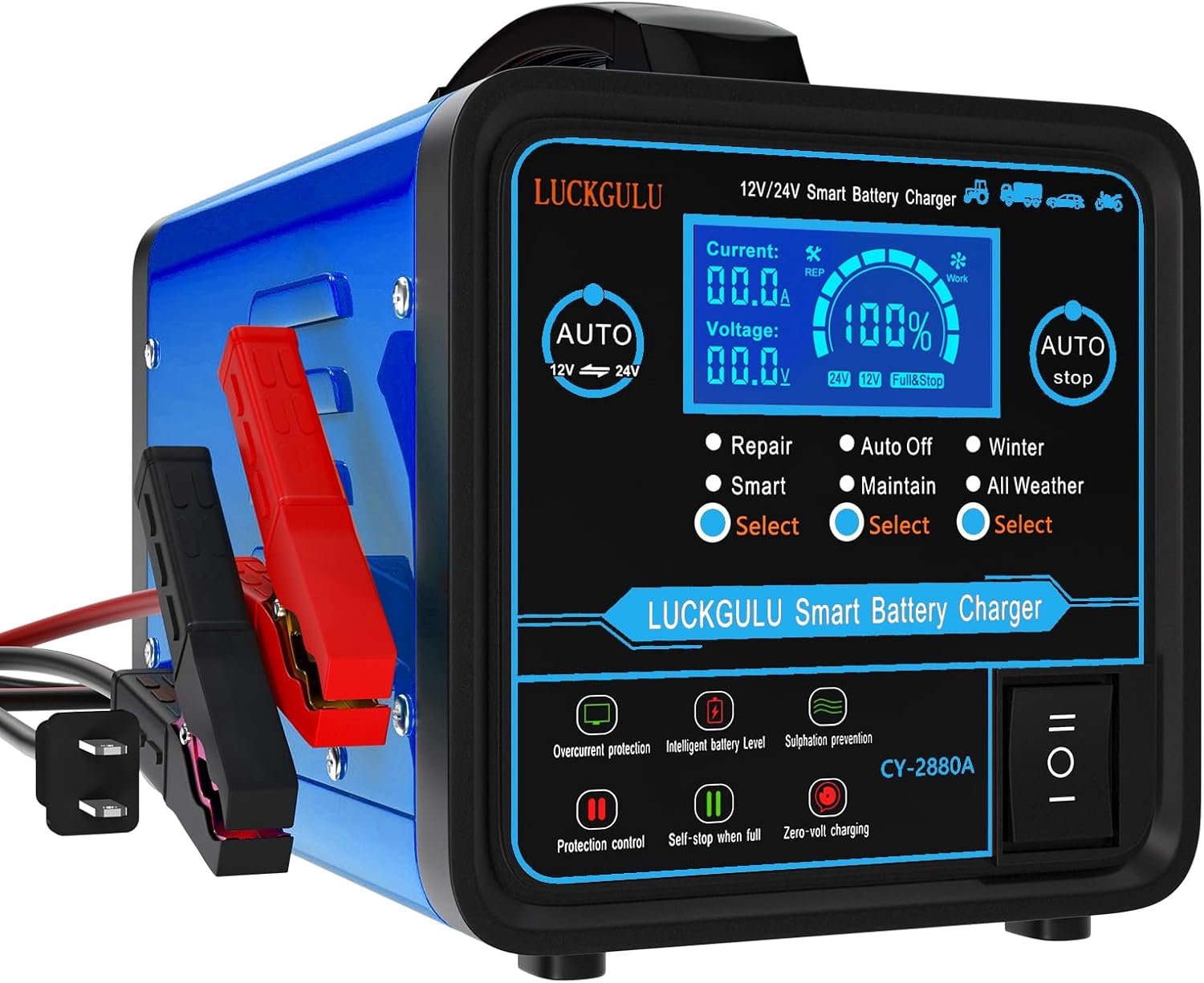 12V/24V Car Battery Chargers Heavy Duty, 15A Automatic Battery Maintainer with Auto Shutoffs, Repair, Winter Mode, High/Low Power Smart Trickle Charger and Desulfator,for Boat,Motorcycle