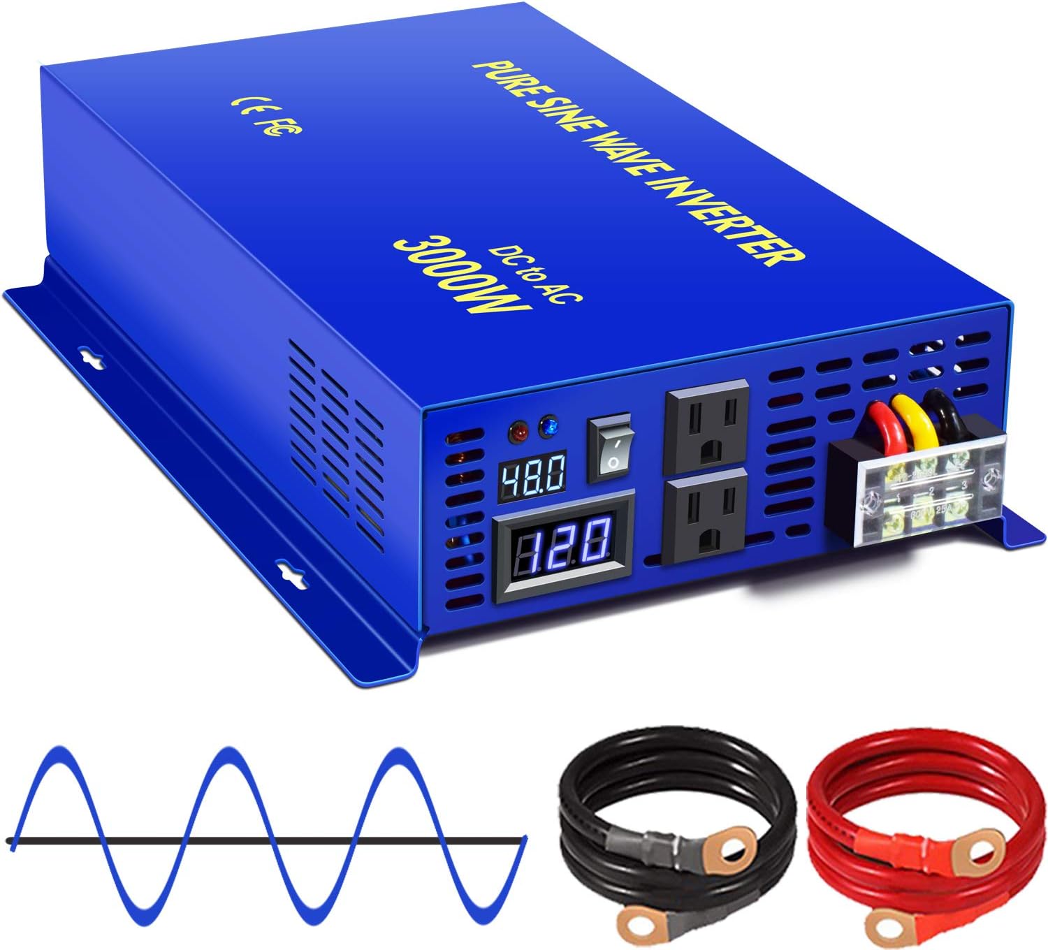 3000 watt Inverter 48 Volt Pure Sine Wave Inverter 48V DC to AC 120V 110V Surge 6000W, Power Inverter for Truck car RV Home Solar. (3000W 48V)