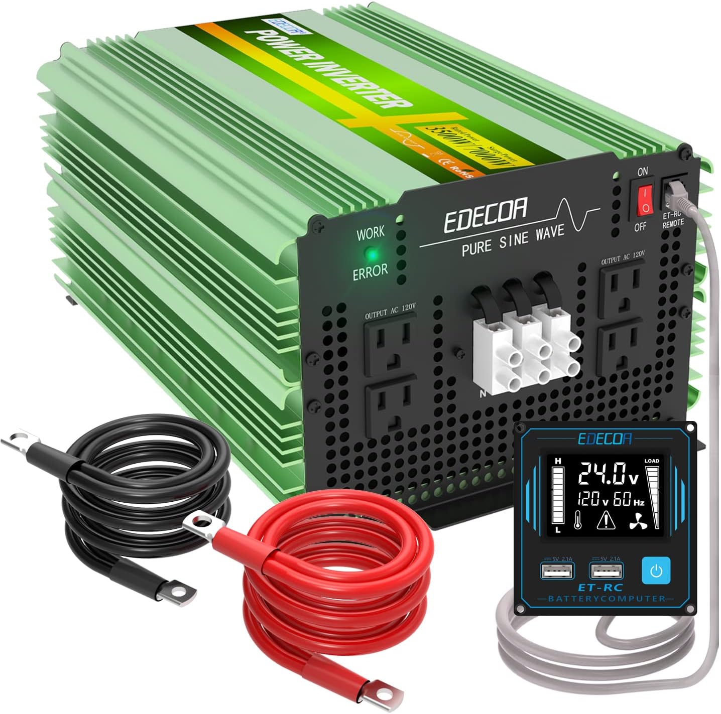 EDECOA 3500W 24 Volts Pure Sine Wave Power Inverter DC 24V to 110V 120V AC with LCD Display and Remote Controller for Truck Motorhome Boat Power Converter
