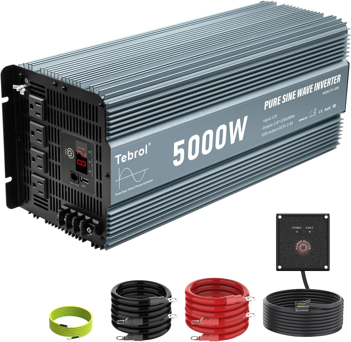 5000W Pure Sine Wave Power Inverter for Homes DC to AC Voltage Converter with LCD Display & 2 AC Outlet, for Home/RV/Truck/Car/Camping/Solar 12V to 110V