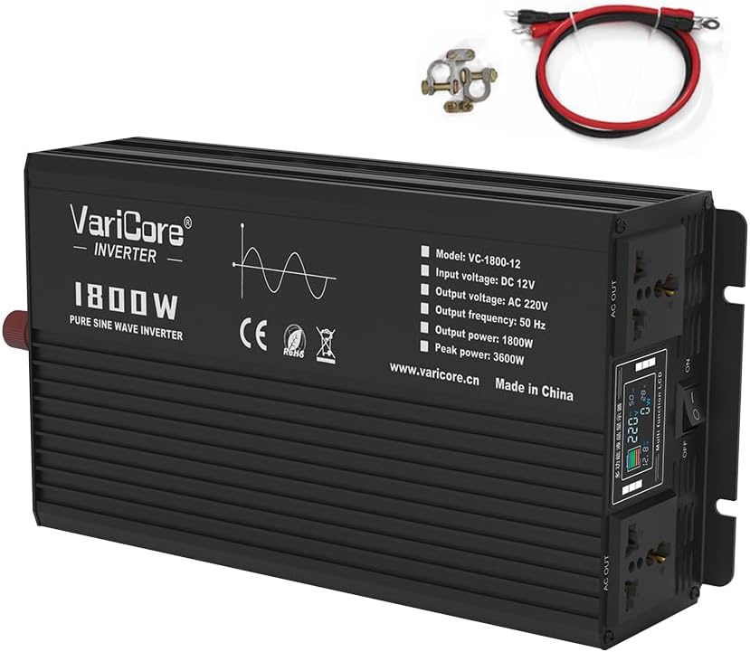1800W Pure Sine Wave Inverter 12VDC to AC 220V Converter for Home, RV, Truck, Camping, Off-Grid Solar Power Inverter with LCD Display Showing Real-time Status, Surge