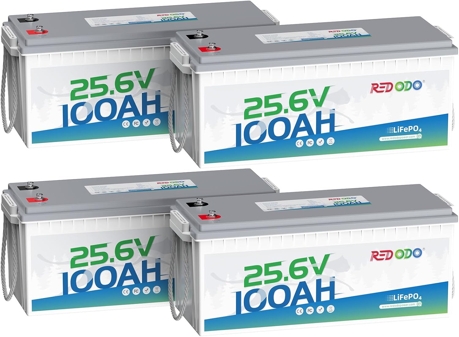 Redodo 4 Pack 24V 100Ah LiFePO4 Battery, Deep Cycle Lithium Battery with 100A BMS, 2560Wh, Up to 15000 Cycles, 10-Year Lifetime, Perfect for Solar Home System, Trolling Motor, Marine, Off Grid, UPS