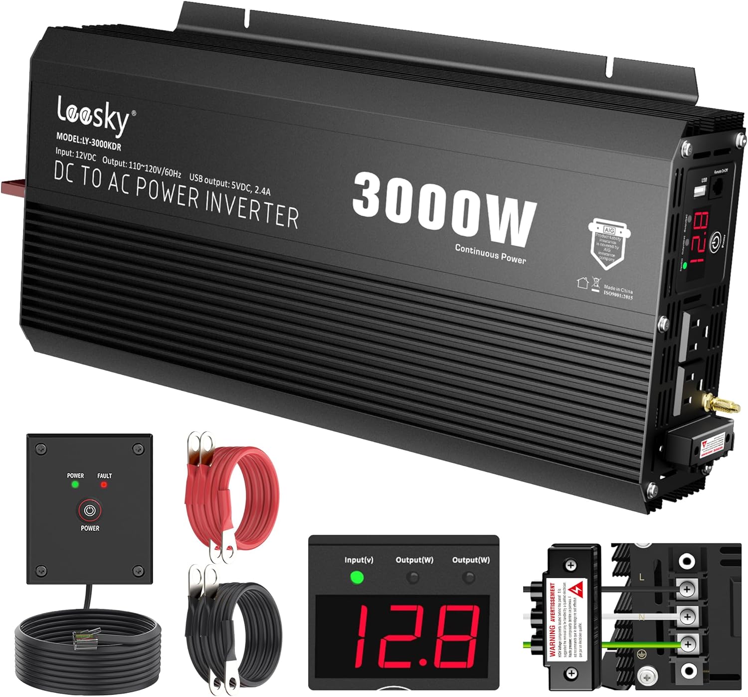3000 Watt Power Inverter 3000W 12V DC to 110V 120V AC Inverter for Car Outdoor Solar Power Home RV Truck Compatible with Lithium Battery UL Fuses AC Terminal Block 40A USB Port Remote Control LEESKY