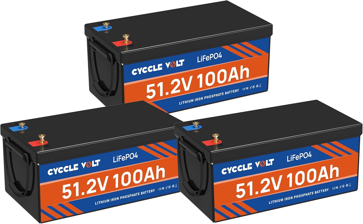 48V 300Ah (3Pack 48V 100AH) LiFePO4 Solar Batteries, 48V Lithium Battery, Built-in BMS, for Solar Off Grid System, Golf Cart, Lawn Mower, RV, Trolling Motor