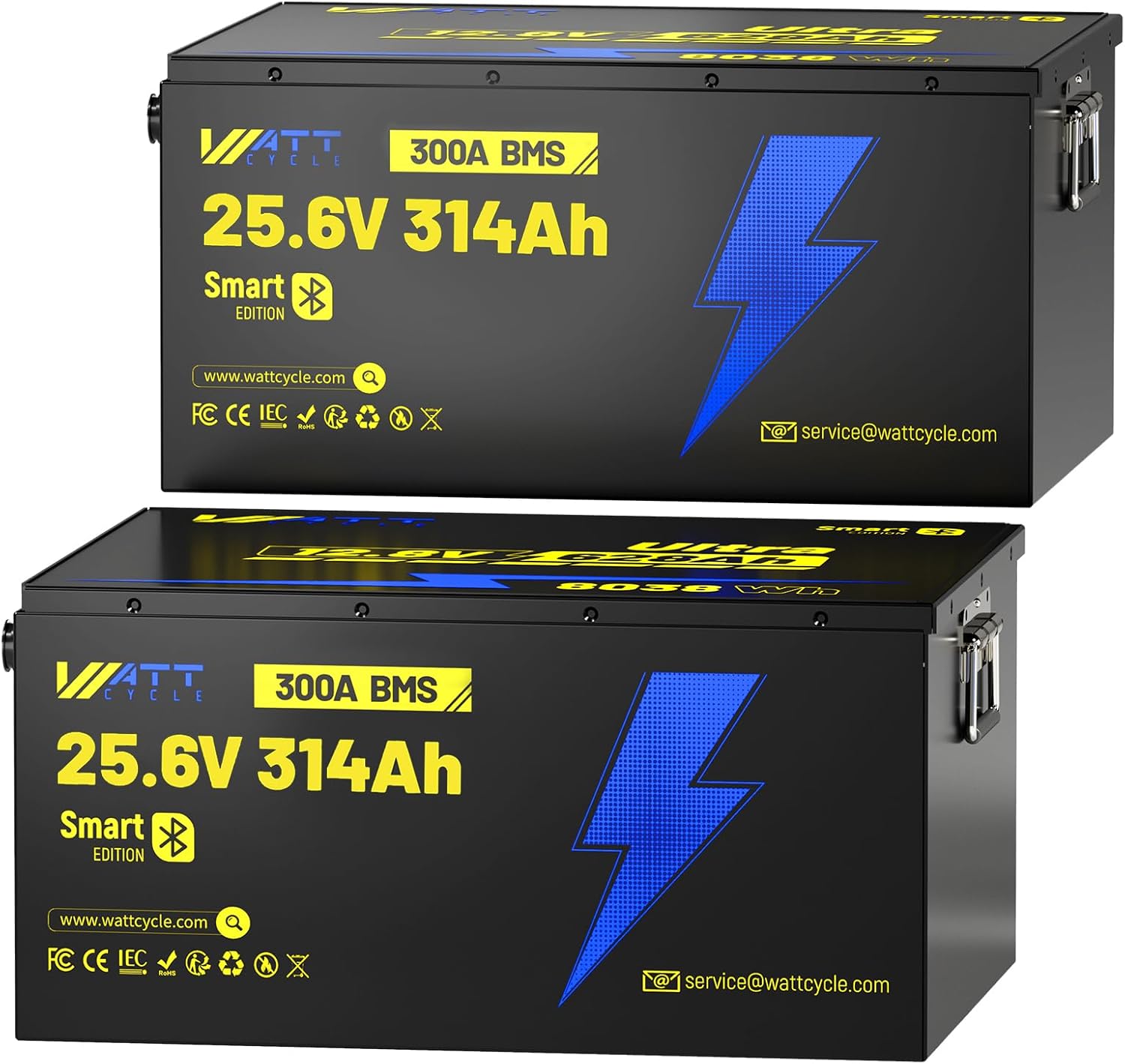 WattCycle 24V 314Ah LiFePO4 Battery 2 Pack, 24V Lithium Battery 300A BMS, LiFePO4 Battery 15000+ Deep Cycles, Rechargable Batteries Built-in Bluetooth, Perfect for Home Energy, RV, Marine, Solar