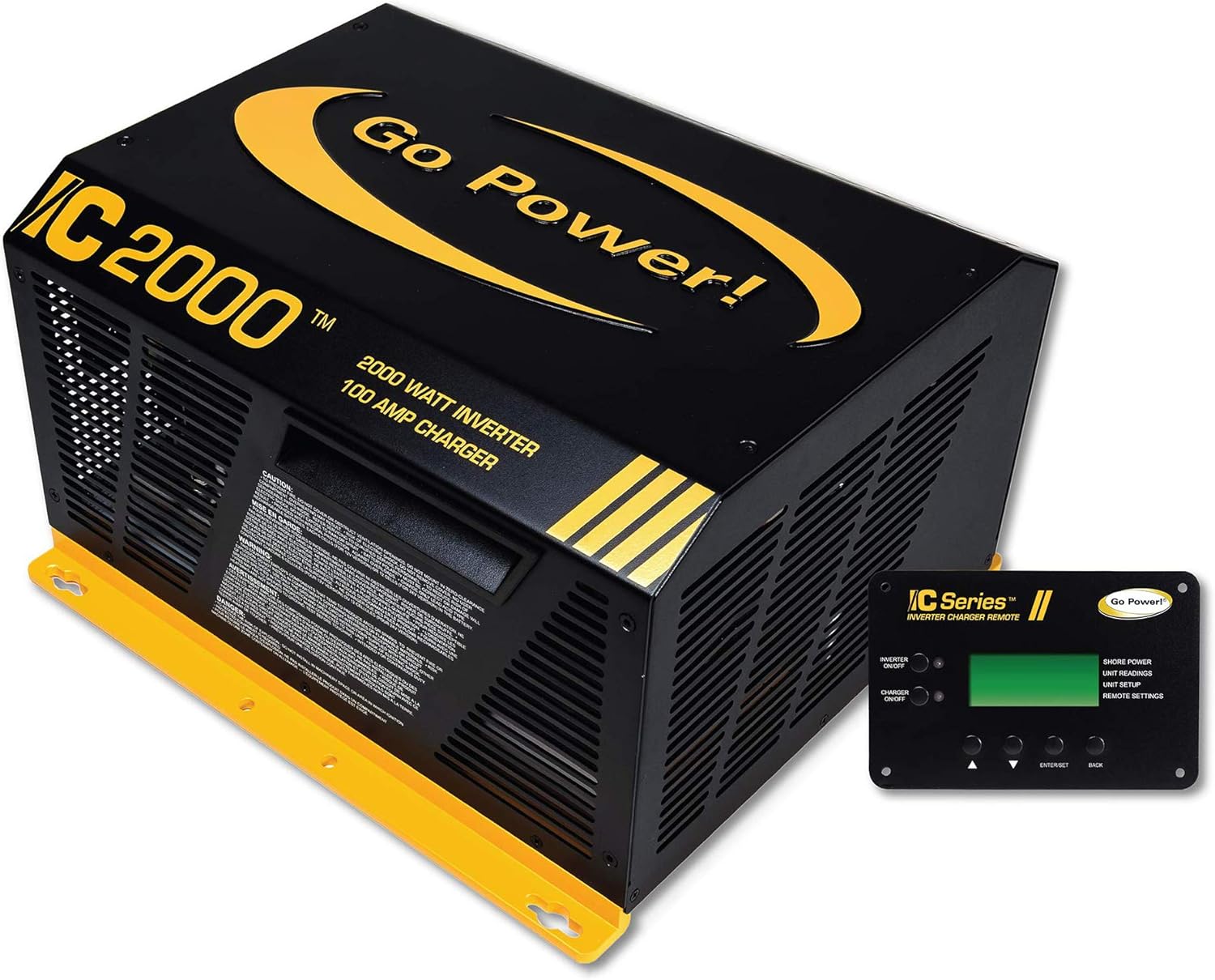 Go Power GP-IC2000-12-PKG 3-in-1 Inverter Charger, 2000W Pure Sine Wave Output, 12V to 120V AC, 3400W Surge Capacity, 100 Amp Charger, Dual 50 Amp Transfer Switch, 12V for RV, Marine, and Off-Grid Use