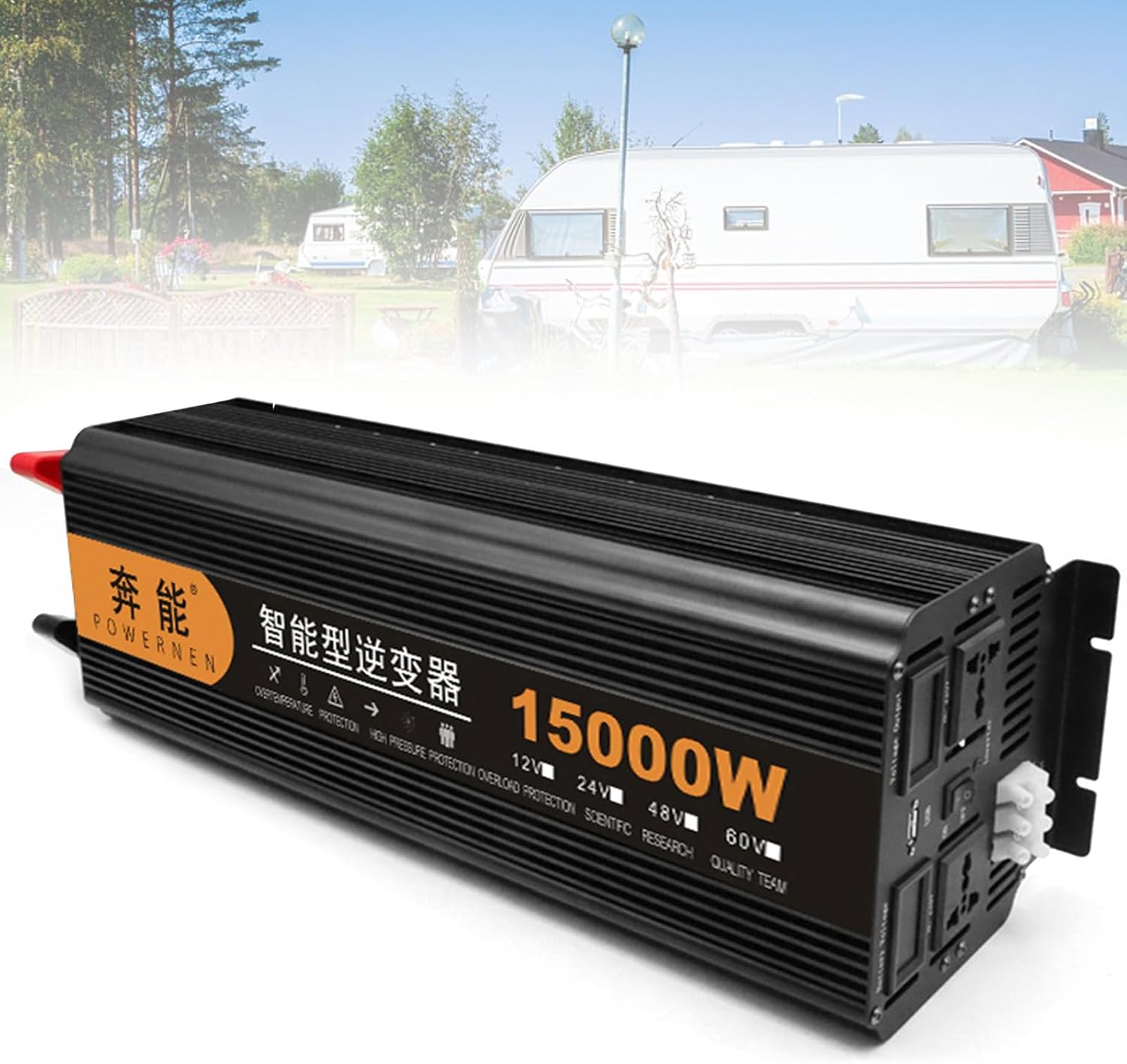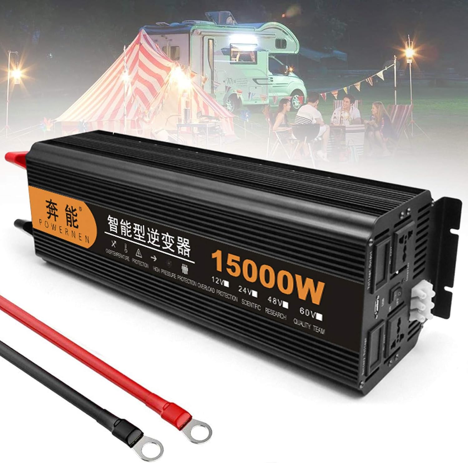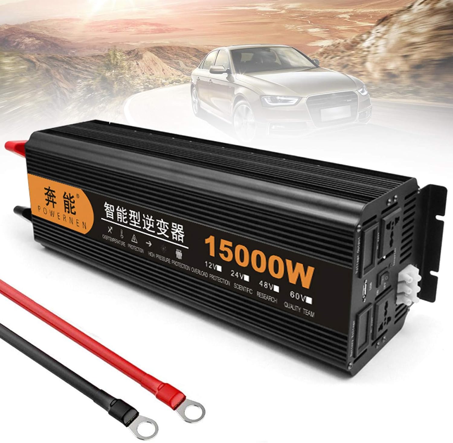 Pure Sine Wave Inverter Dc 12V/24V/48V to Ac 220V/230V Car Multi-Functional Power Inverter Converter with Dual Ac Outlets & USB for Rv Camping Outdoor Power Supply,15000W-24V