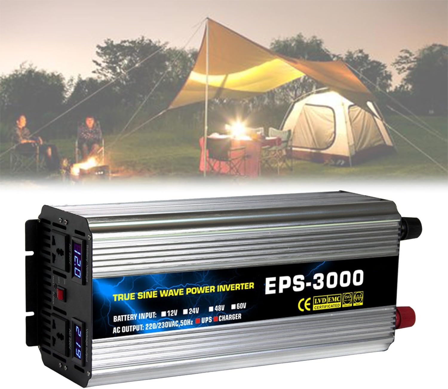 Pure Sine Wave Inverter, 3000 W Home Vehicle Voltage Converter 24 V, 48 V, 60 V, 72 V to 220 V, Suitable for Travel Camping RV,48V