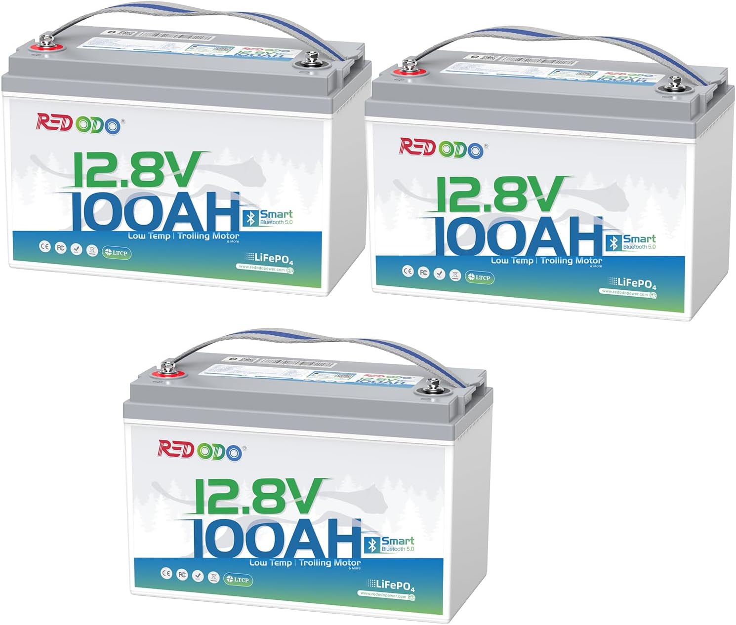 Redodo 3 Pack 12V 100Ah Group 31 Bluetooth LiFePO4 Battery, Low Temp Cutoff Lithium Battery with 100A BMS, Max. 15000 Deep Cycles, Perfect for RV, Trolling Motors, Off-Grid System