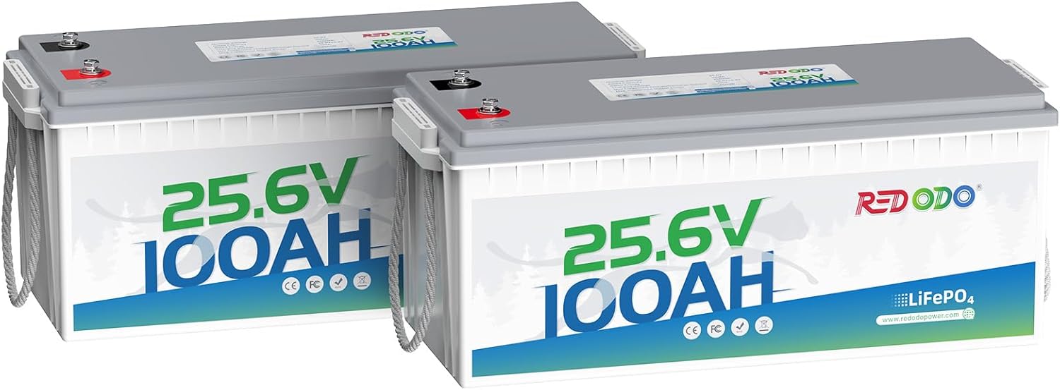 Redodo 2 Pack 24V 100Ah LiFePO4 Battery, Deep Cycle Lithium Battery with 100A BMS, 2560Wh, Up to 15000 Cycles, 10-Year Lifetime, Perfect for Solar Home System, Trolling Motor, Marine, Off Grid, UPS