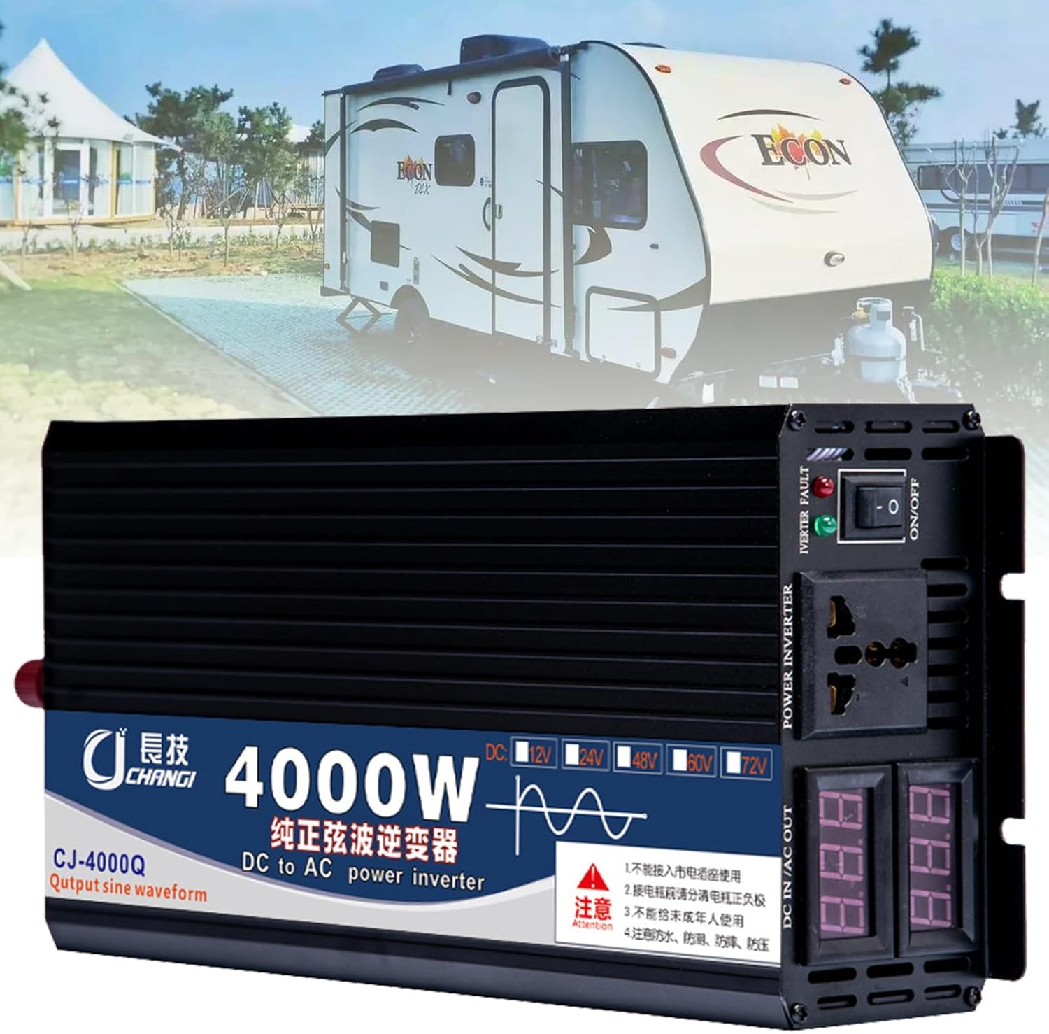 5 KW 12 V96 V to 220 V Pure Sine Wave Inverter with HighDefinition Smart Display, Solar Car Home OffGrid Photovoltaic Inverter,5000W72V