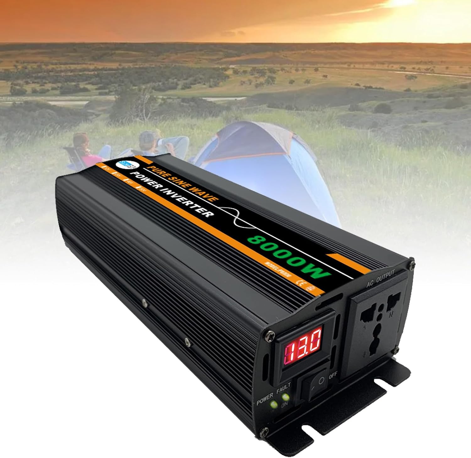 Pure Sine Wave Power Inverter 4000W/5000W/5500W/6000W/7000W/8000W/9000W/10000W/12000W DC 12V/24V/48V/60V to AC 230V/240V converter with dual AC outlets & LED Display for RV Truck Car,8000W-12V