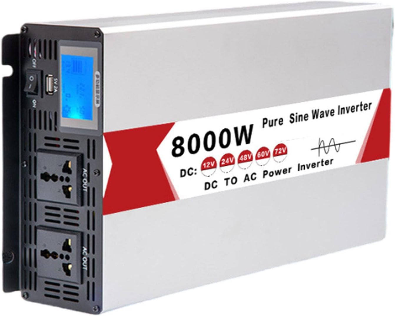 Pure Sine Wave Inverter, 12 V, 24 V, 48 V, 60 V to 220 V Home Car Converter with 2 Universal Sockets and LCD Display,8000W48V