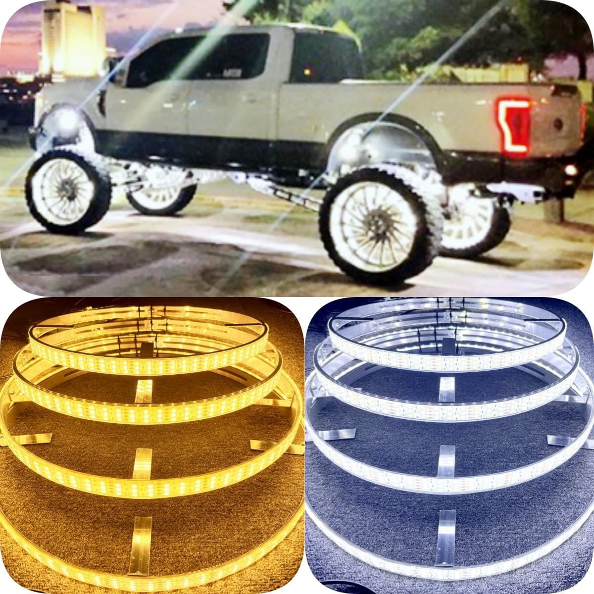 4PCS 17.5 inch 3-Row Amber/White Double Pure Color Switchback Turn Signal Fuction with Remote/Switch Wire Controller Led Wheel Well Lights Wheel Kit for Truck Car Offroad