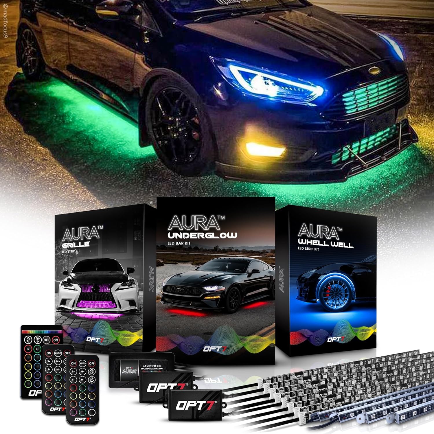OPT7 Wheelwell & Grille & Underglow Bundle Kit with Remote Control, Rigid Aluminum LED Light Bars, Waterproof Light Strips, Multicolor, Music Sync Car Accessories