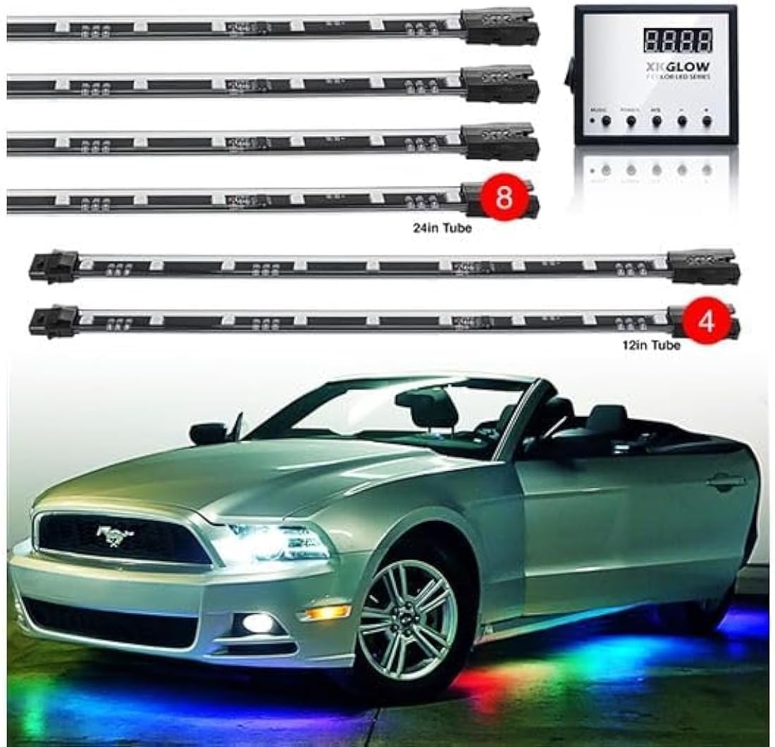 2nd Gen 8pc 24" Tubes + 4pc 12" Tubes Undercar & Interior Advanced 3 Million Color UFO Style LED Car Truck ATV Underbody Glow Wireless 120 Preset Remote Control Light Options Accent Light Kit