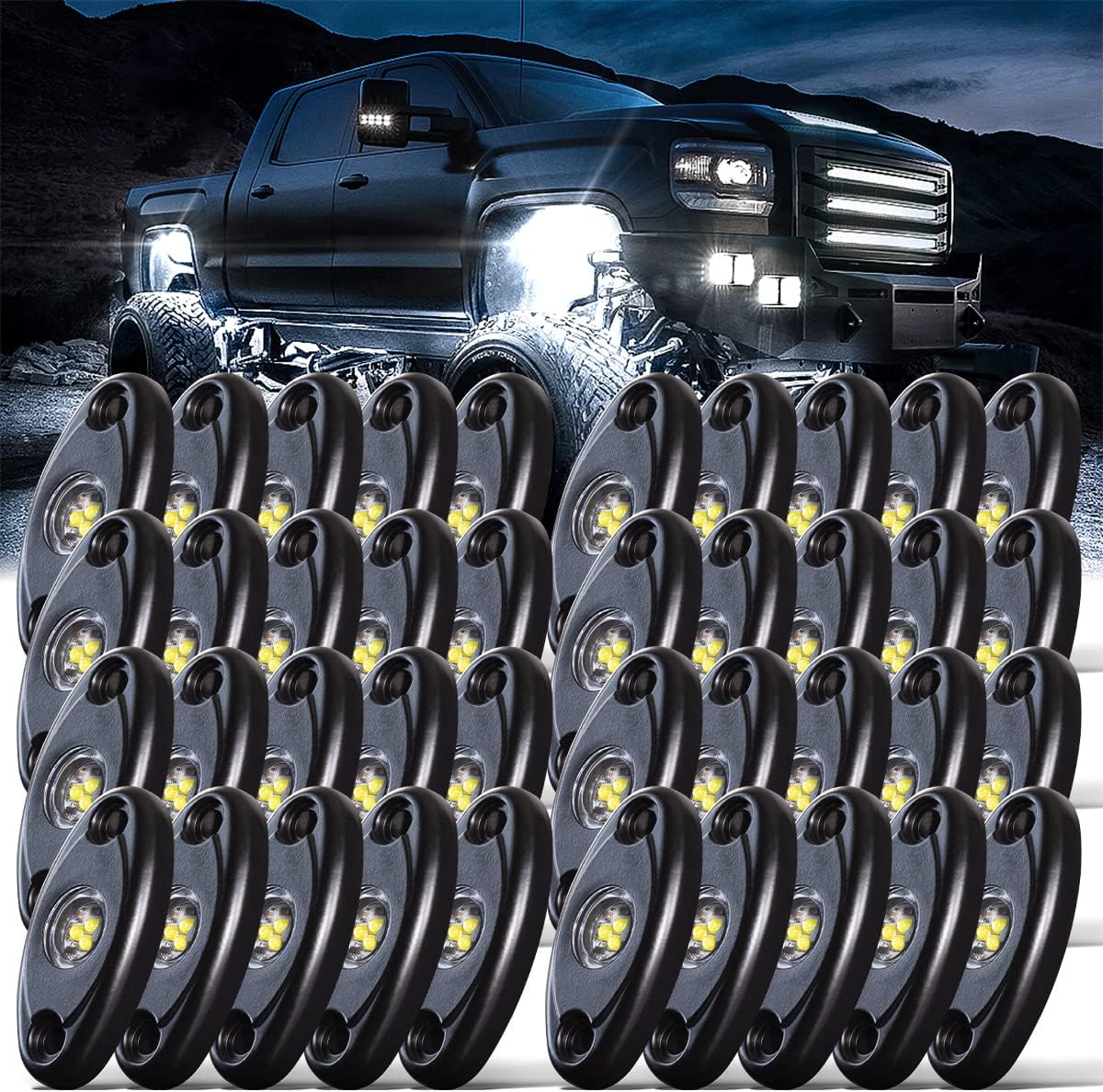 LEDMIRCY R1 Pure White Rock Lights 40PCS High Power Underbody LED Rock Lights White for Off Road Truck ATV UTV SUV RZR Trail Rig Light Auto Car Boat Waterproof Shockproof Underglow Light