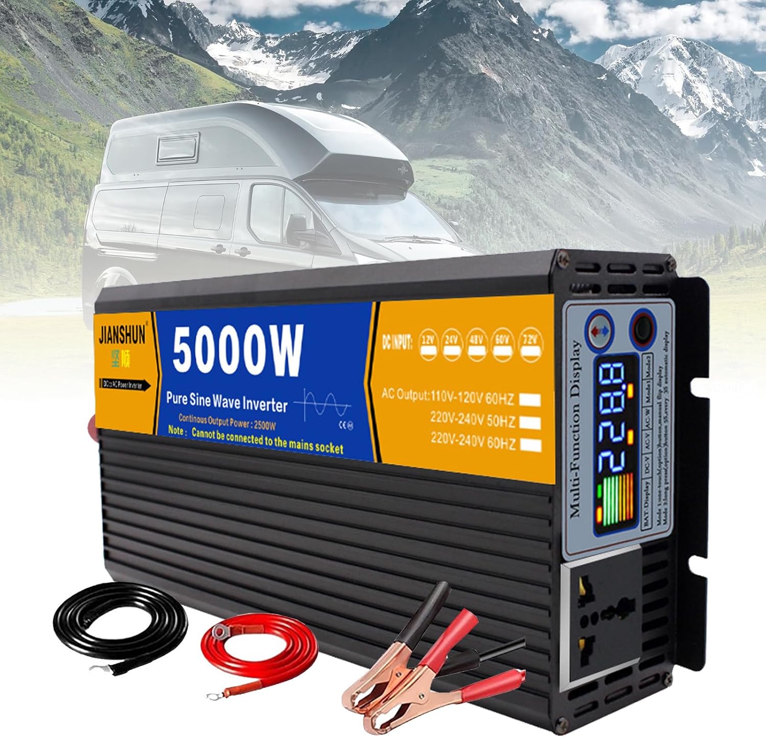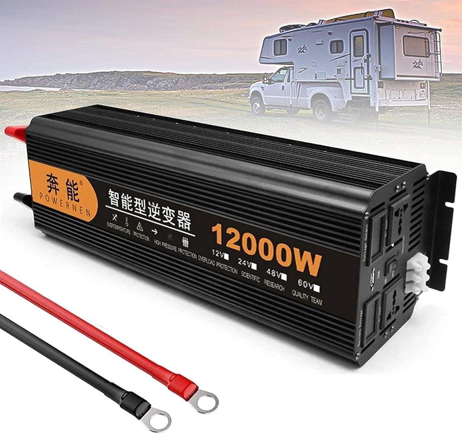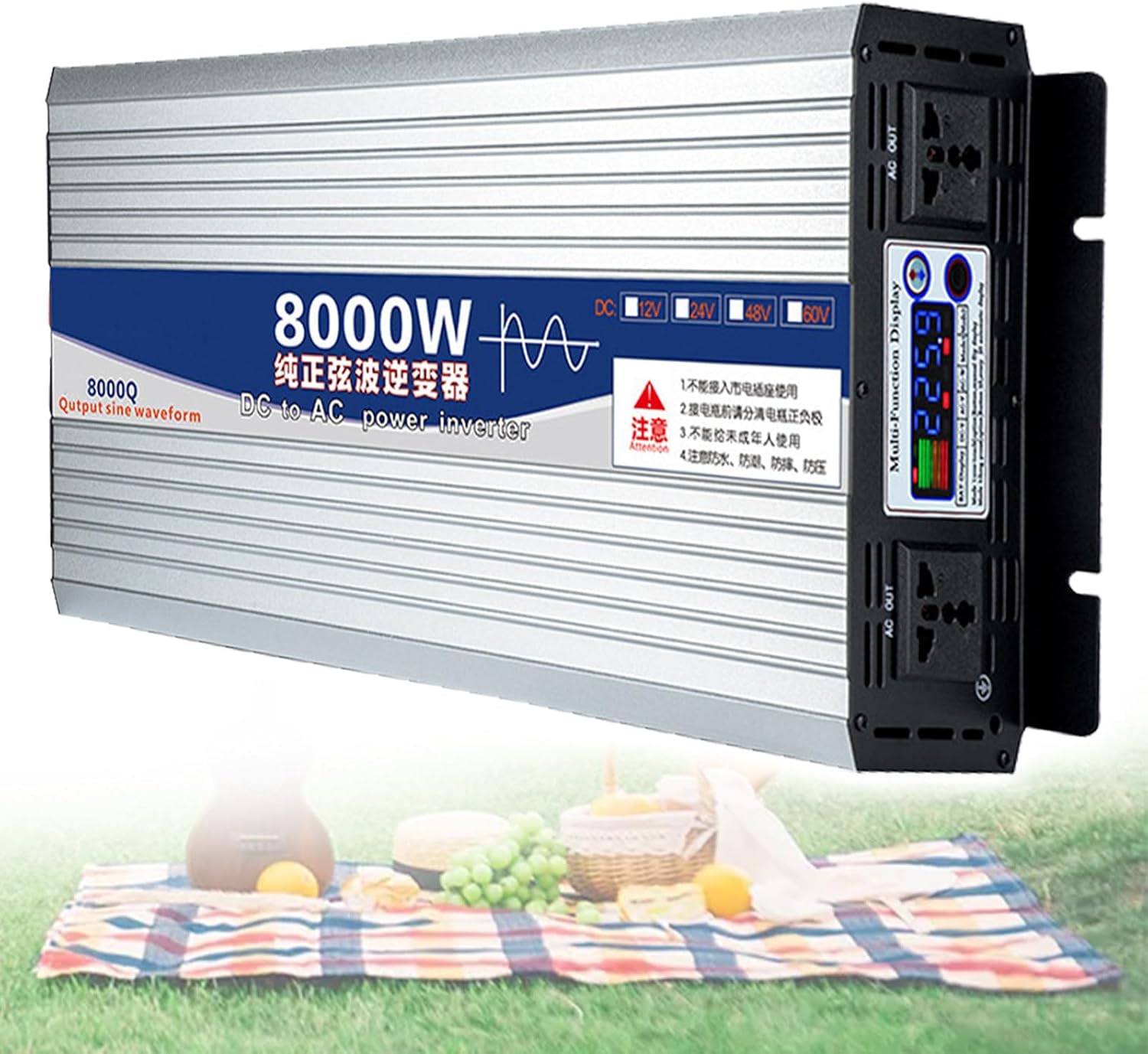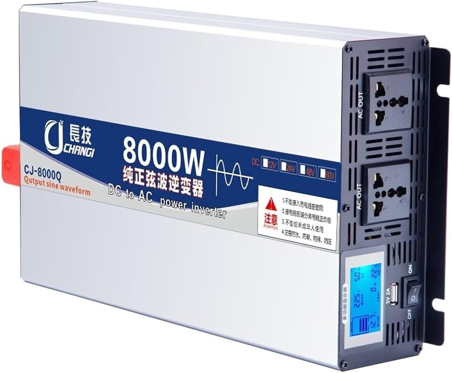Pure Sine Wave Inverter, Car/Home Voltage Converter with 2*LED Display and International Universal Socket, 12 V, 24 V, 48 V, 60 V DC to 220 V AC,6000W60V