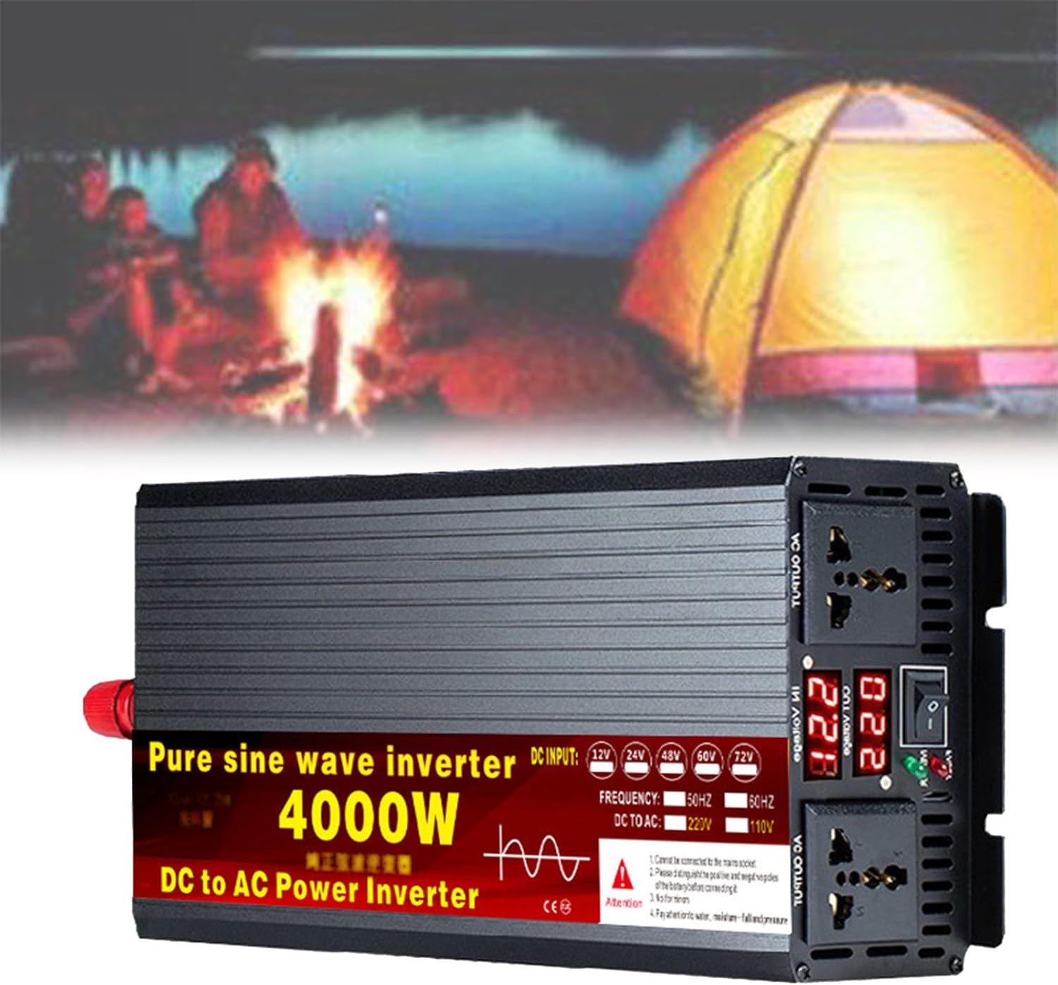Pure Sine Wave Inverter, 12 V,24 V,48 V,60 V,72 V to 220 V Power Converter with 2 AC outlets and 2 Digital displays, for RV, Truck, Boat, Camping, and Home,4000W24V