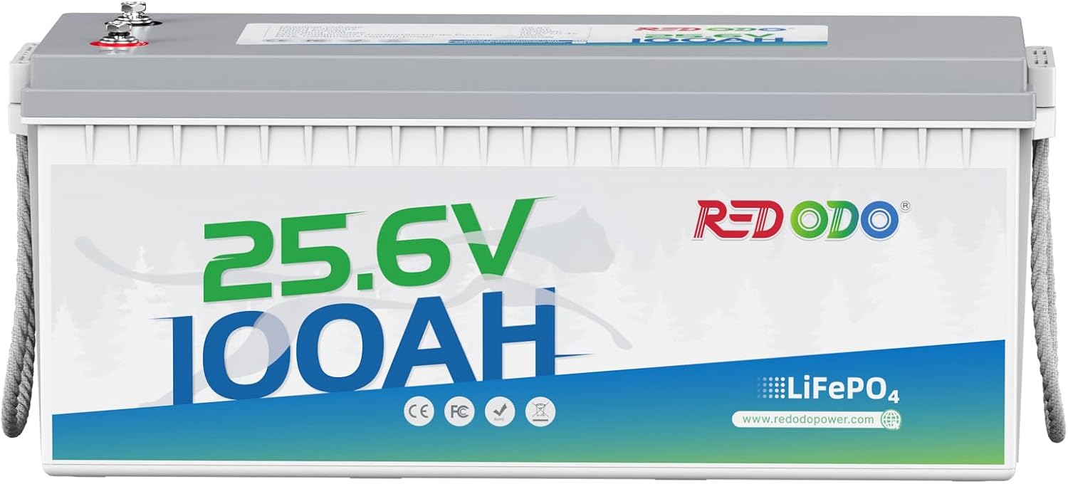 Redodo LiFePO4 Battery 24V 100Ah, Max. 2560W Power Output, Built in 100A BMS, 4000-15000 Deep Cycles & 10-Year Lifetime, Perfect for RV, Marine, Trolling Motor, Solar Off-Grid System
