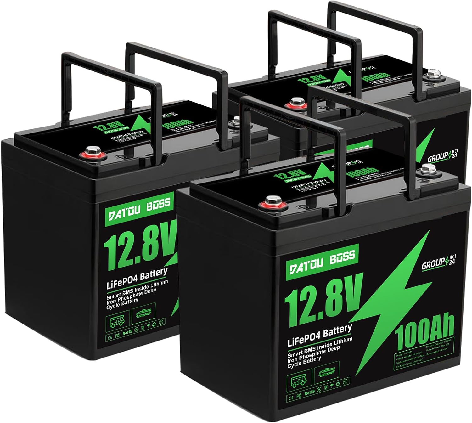 DATOUBOSS 12V 100Ah LiFePO4 Battery, 1280Wh 12V 100Ah Lithium Battery Built-in 100A BMS, 15000+ Deep Cycle Battery for RV, Solar, Trolling Motor & Camping (12V100Ah-Group 24-3pcs)