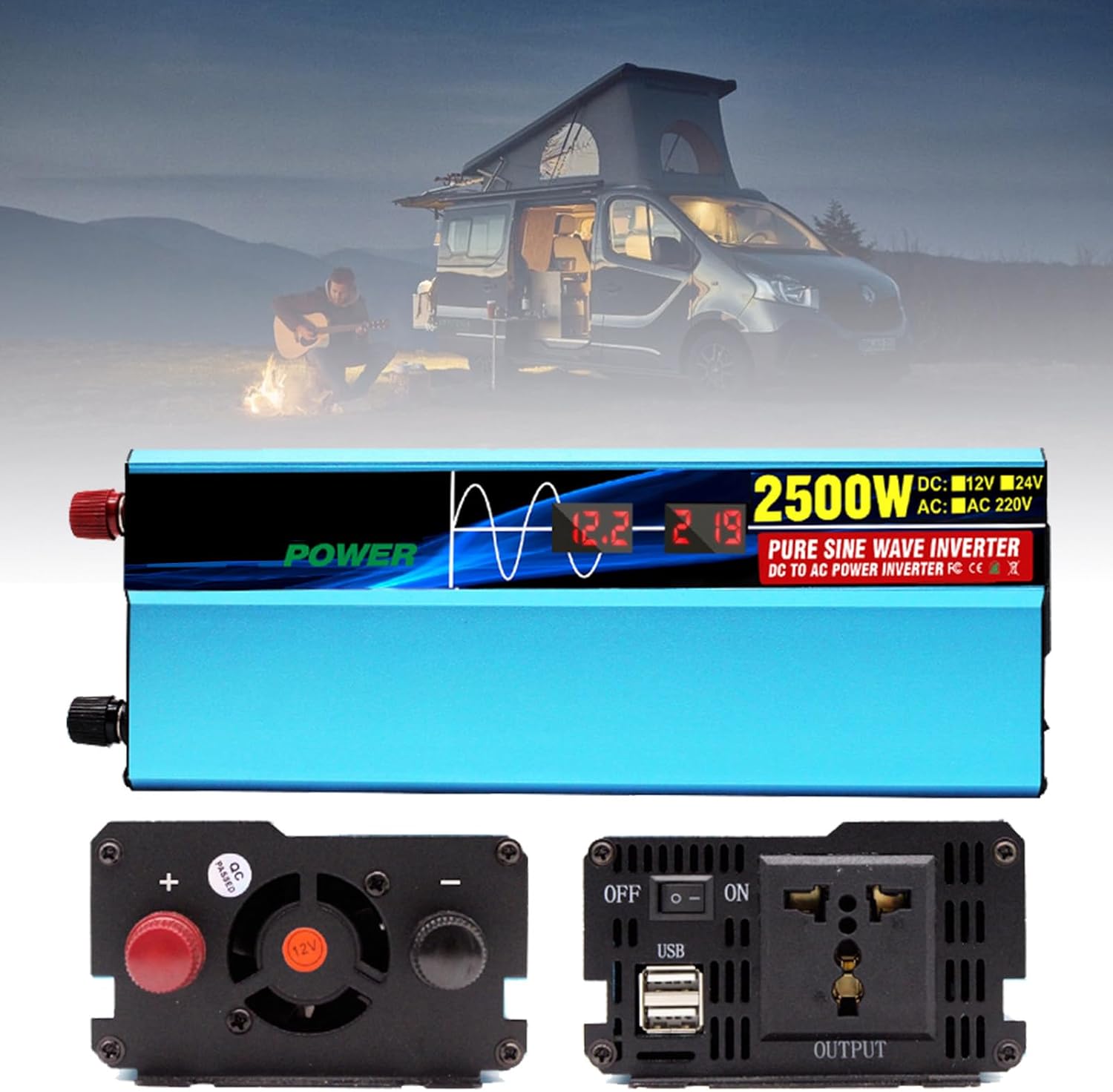 Pure Sine Wave Power Inverter(1500W 1800W 2500W), DC 12V to AC 220V, with USB Interface + Universal Socket + LED Display, for Home/Outdoor/RV/Camping,2500W