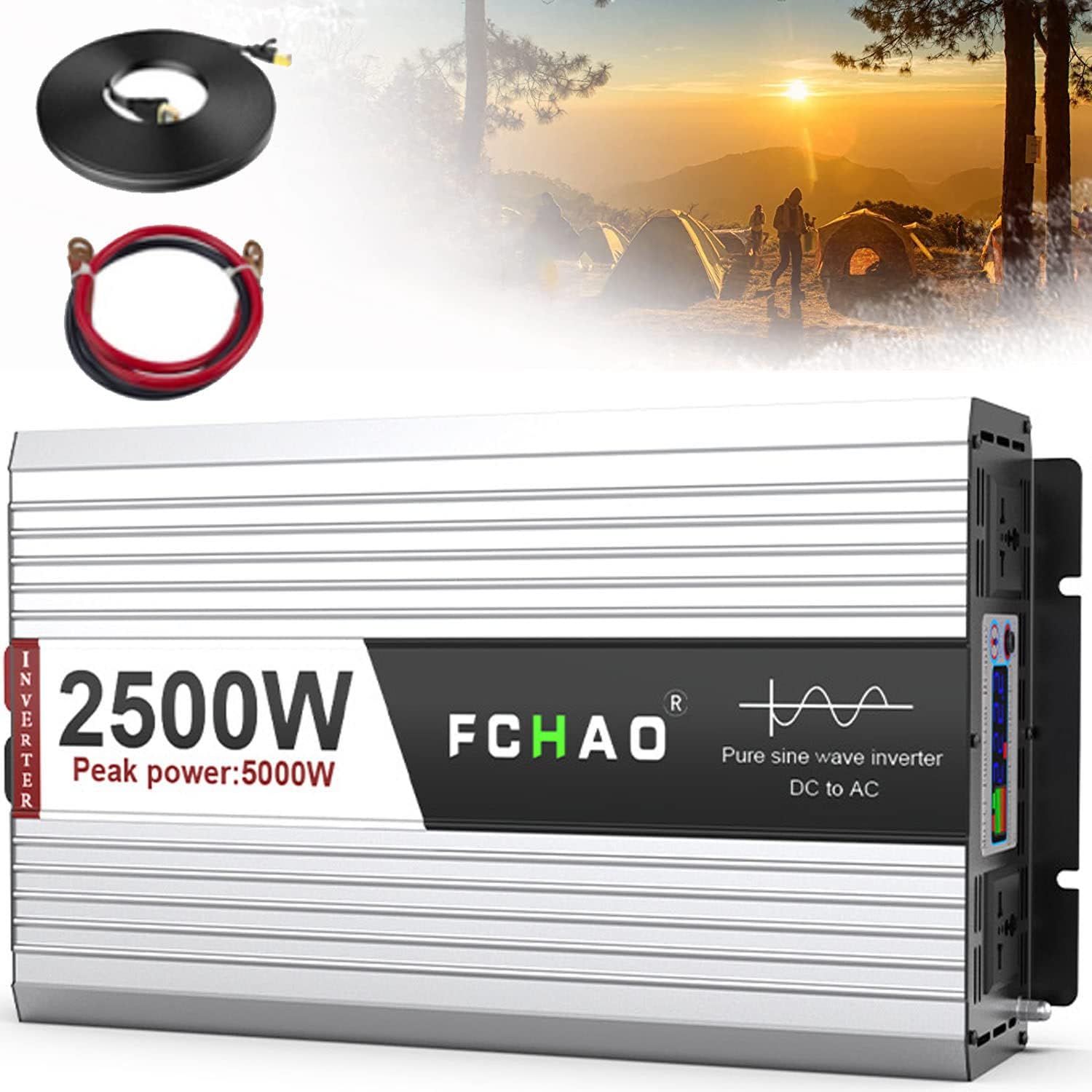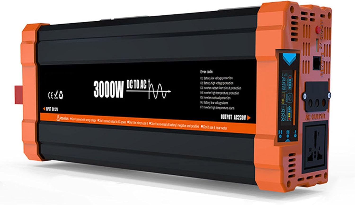 Home Car Inverter, 12 V,24 V Off Grid Inverter Pure Sine Wave with LED Display Suitable for Travel, Camping, RV,3000W24V