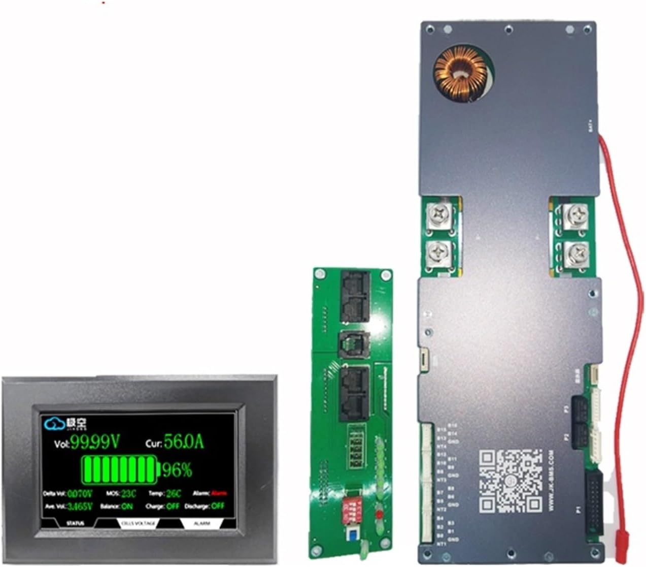 JK Inverter BMS with 4.3inch LCD, 8S 9S 10S 11S 12S 13S 14S 15S 16S Smart BMS 100A 150A 200A Li-ion LiFePo4 Energy BMS 1A 2A(PB2A16S15P with 4.3inch LCD)