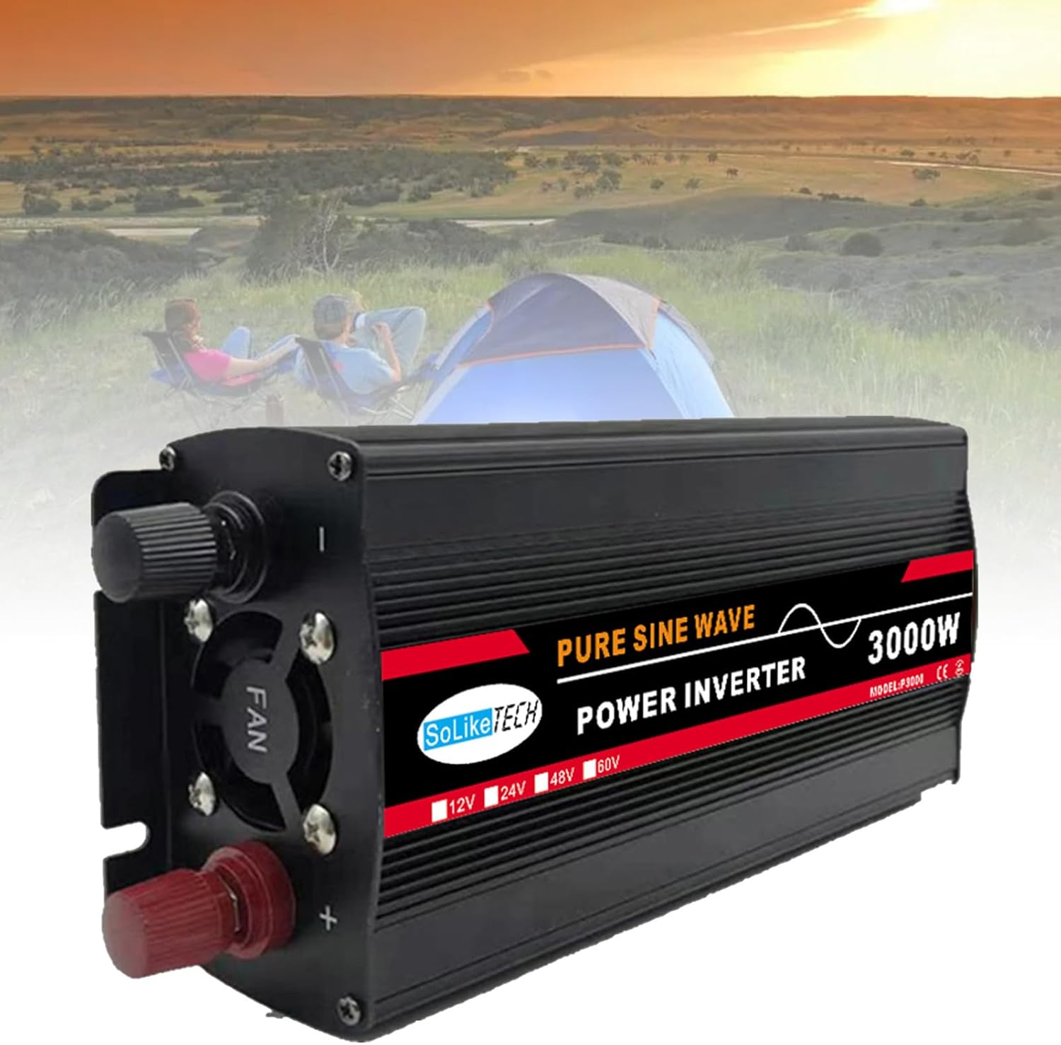 Pure Sine Wave Power Inverter (3000W/4000W/6000W/8000W/10000W/12000W) - DC (12/24/48/60V) to Ac (220V/50Hz), Solar Inverter with Two Cooling Fans, for Home/Outdoor/Rv/Camping,3000W-24V