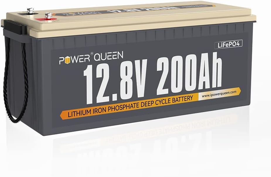 Power Queen 12V 200Ah LiFePO4 Battery 2560Wh, RV Lithium Battery up to 15000 Cycles, 10 Years Lifespan, Used for Solar Off Grid Camping, Home Energy Storage, RV Camper Trailer Truck