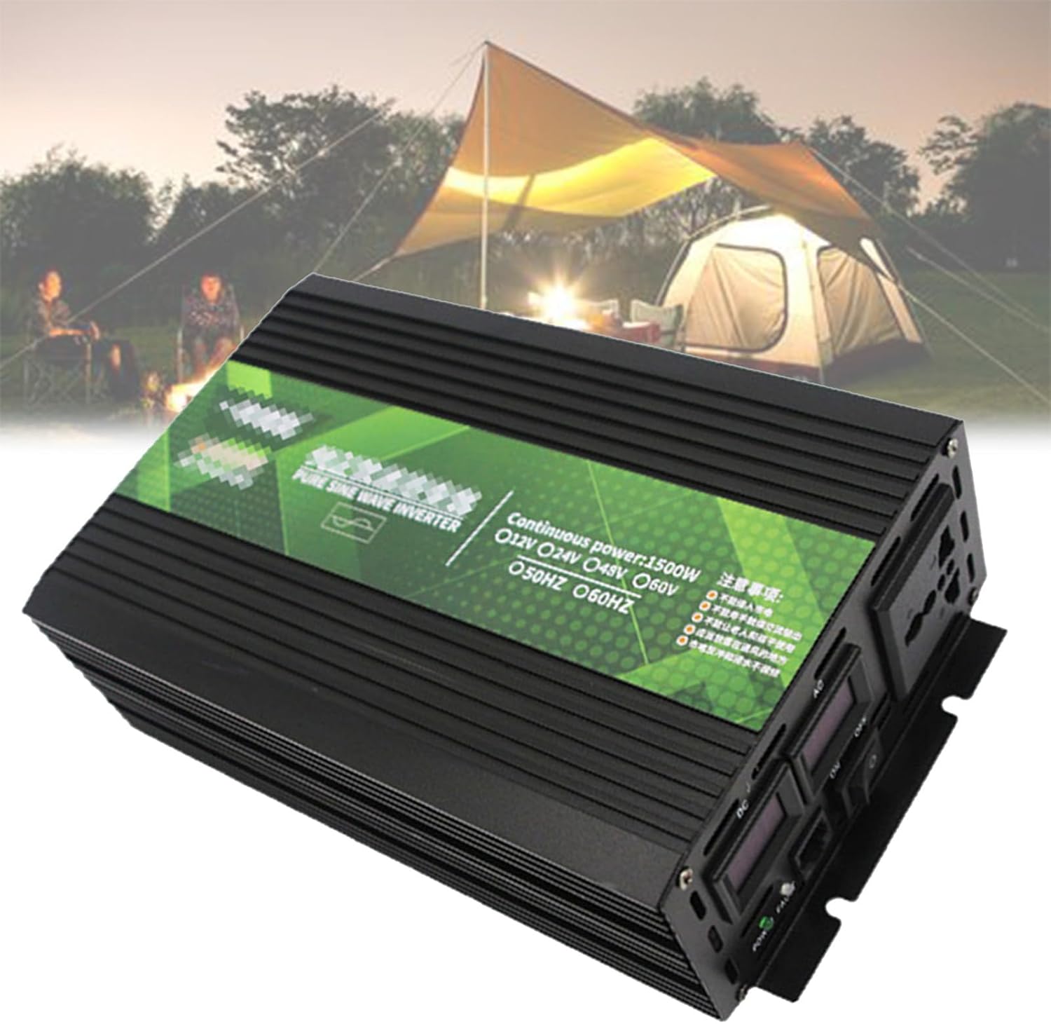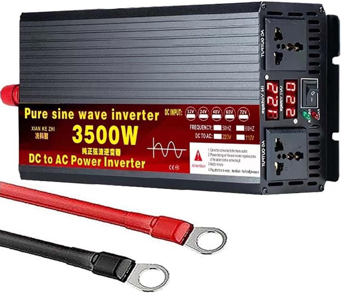 Pure Sine Wave Inverter with 2 LED Display, International Outlets and Cooling Fan, 12 V, 24 V, 48 V, 60 V DC to 220 V AC, for RV Car Caravan Camping Boat,4000W60V