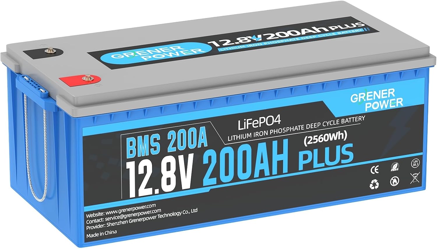 1 Pack 12.8V200Ah Plus Lithium Battery, 200A BMS, Max. 2560W Power Output, 4000-15000 Deep Cycles Lithium Battery, 10-Year Lifetime, Perfect for RV, Camping, Marine, Solar Off Grid