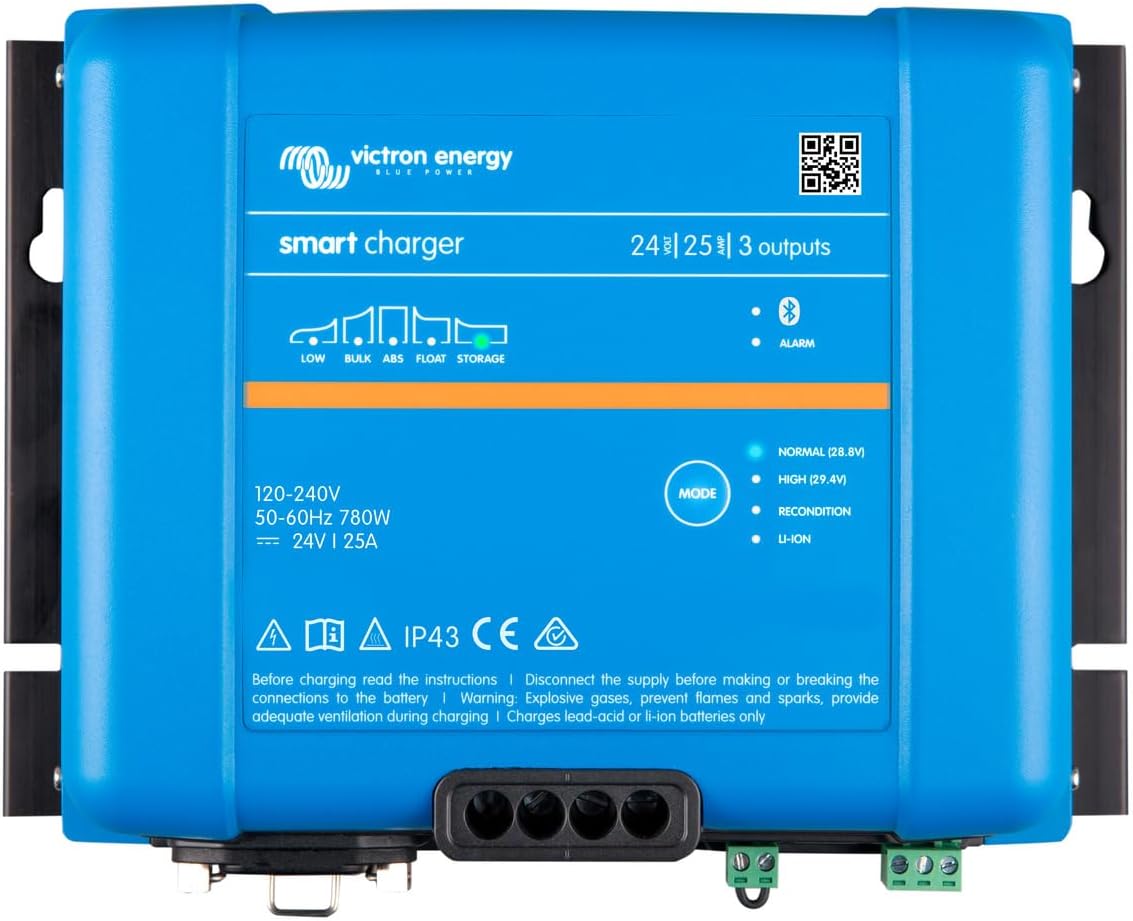 Victron Energy Smart IP43 24-Volt 25 AMP 120-240 VAC, 3 Output Battery Charger with Bluetooth