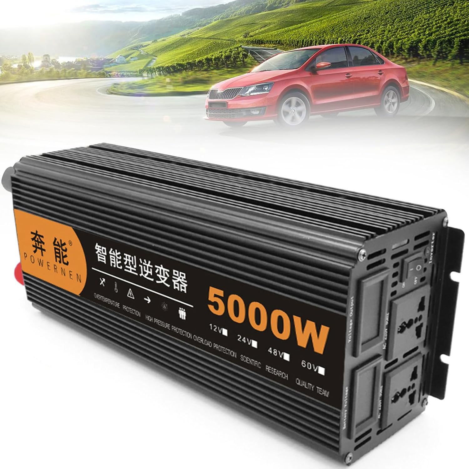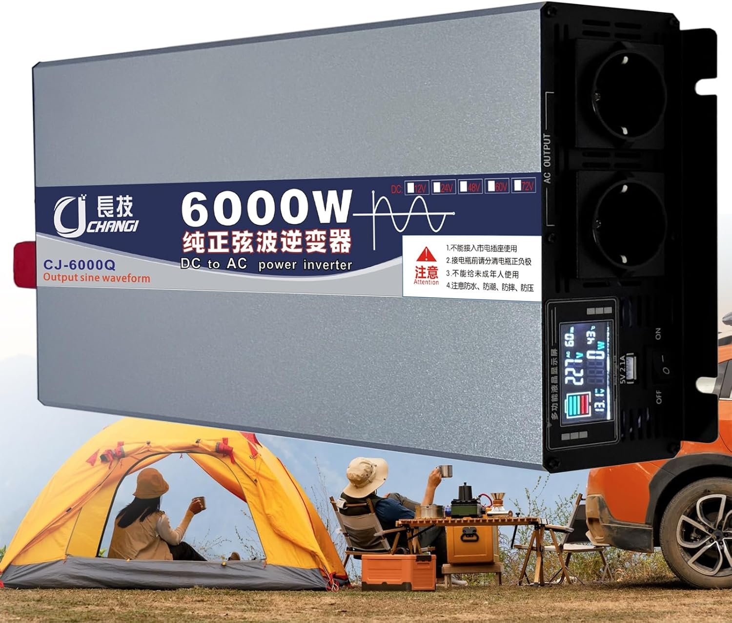 Pure Sine Wave Inverter Dc 12V/24V/48V to Ac 220V/230V Car Multi-Functional Power Inverter Converter with Dual Ac Outlets & USB for Rv Camping Outdoor Power Supply,6000W-12V