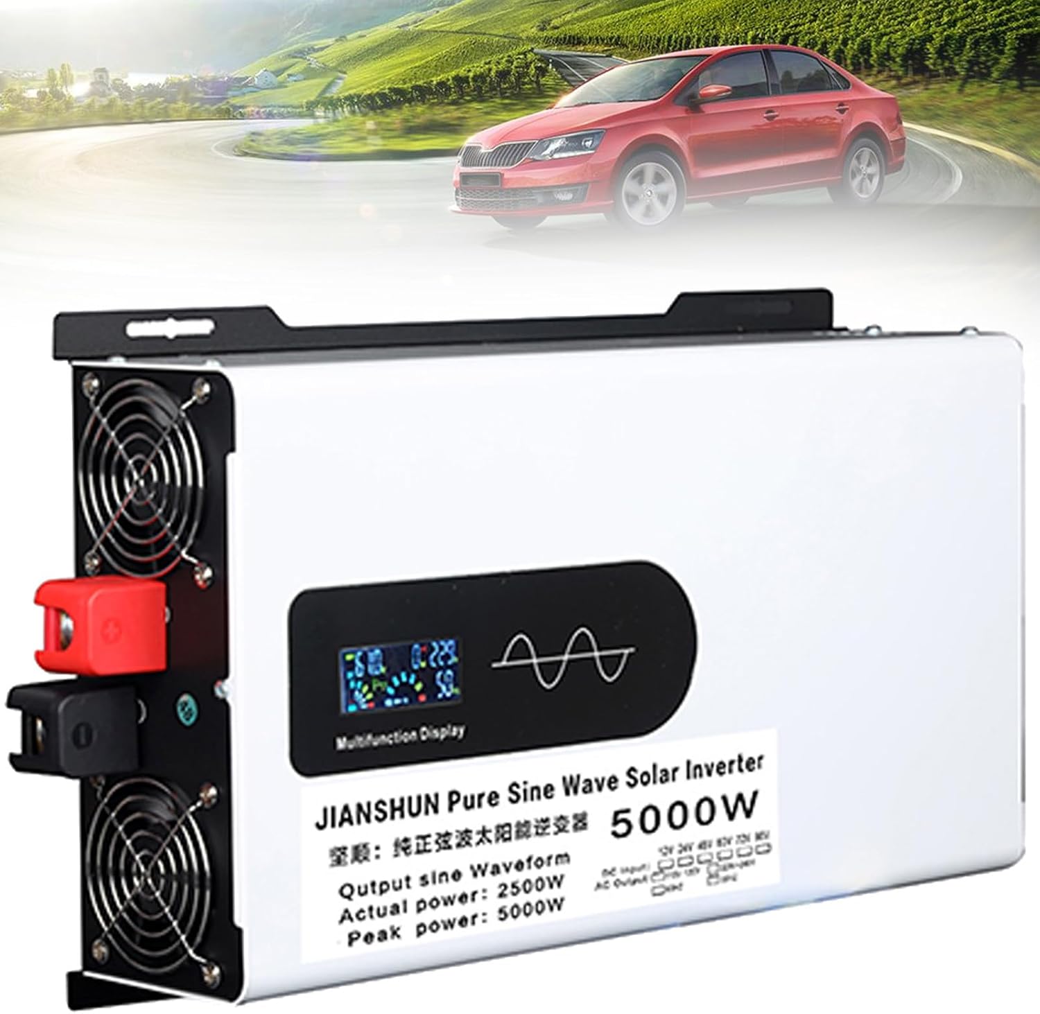 Pure Sine Wave Inverter DC 12V/24V/48V to AC 220V 230V Converter Car Power Inverters Voltage Transformer with Dual AC outlets &1 USB Port for RV Truck Travel Camping,5000W-24V