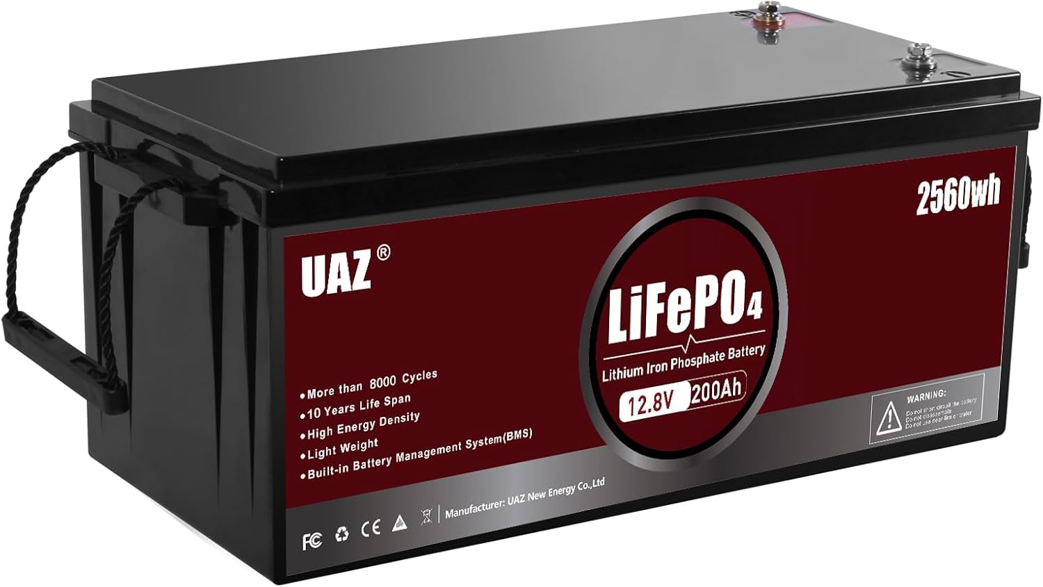 UAZ 12V 200Ah Lifepo4 Battery 15000 Deep Cycle Rechargeable Lithium Iron Phosphate Battery with 200A BMS for Rv Home Storage Emergency Lighting Trolling Motor