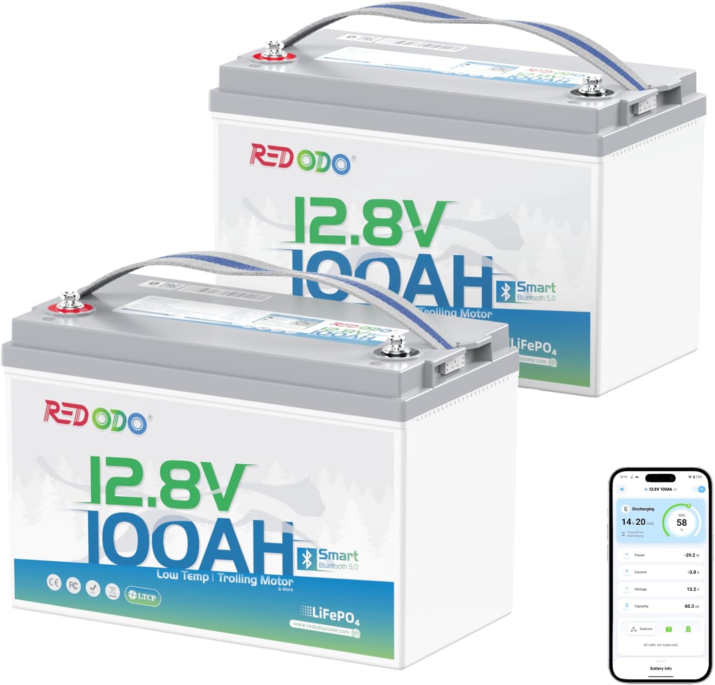 Redodo 2 Pack 12V 100Ah Group 31 Bluetooth LiFePO4 Battery, Low Temp Cutoff Lithium Battery with 100A BMS, Max. 15000 Deep Cycles, Perfect for RV, Trolling Motors, Off-Grid System