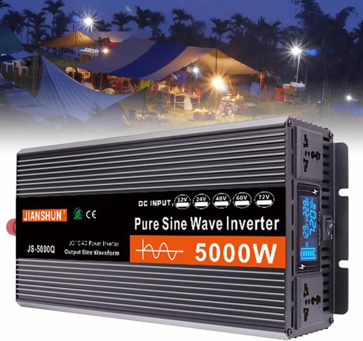 3000W/4000W/5000W/6000W Pure Sine Wave Inverter DC 12V/24V/48V/60V to AC 220V Power Inverter High Efficient Dc Power Inverters for Smartphones Tablet,5000W-12V