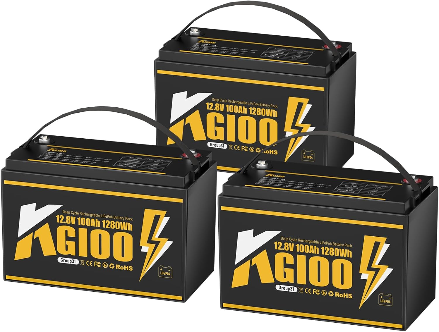 3PACK 12V 100Ah LiFePO4 Battery with 100A BMS, Group 31 Deep Cycle Lithium Battery,Up to 15000 Cycles,10-Year Lifespan,Use EV Grade A+ Cell,Perfect for RV, Solar System, Trolling Motor, etc.