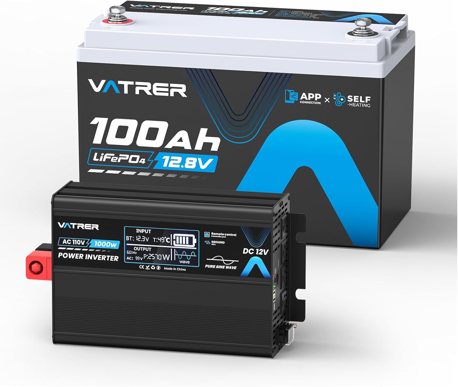 12V 100Ah Group 31 Lithium LiFePO4 Battery with Self-Heating 100A BMS Rechargeable Battery + 1000 Watt Pure Sine Wave Inverter 12V DC to 110V/120V AC Power Inverter, Perfect for RVs, Off-Grid, etc.