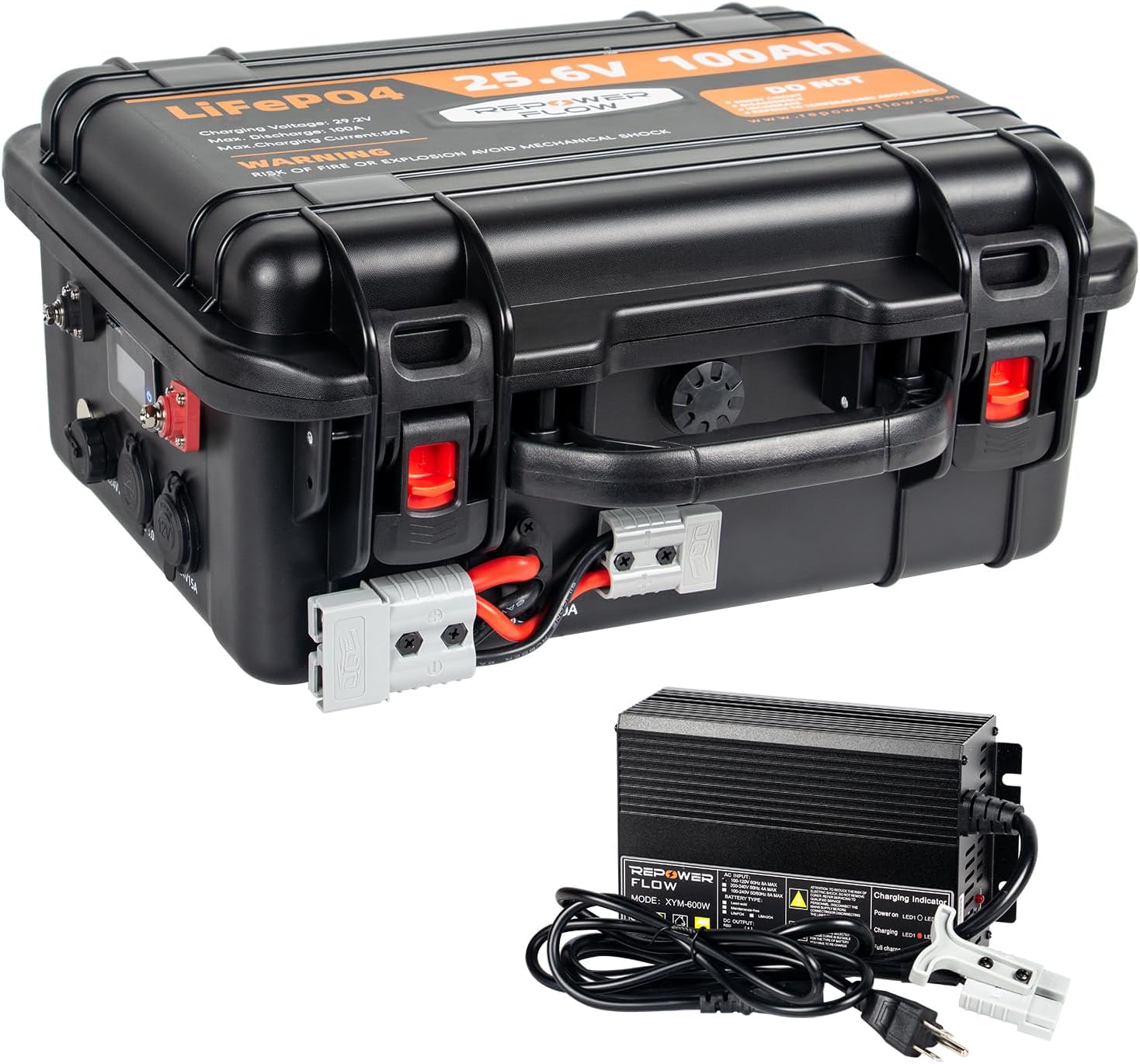 24V 100Ah LiFePO₄ Deep Cycle Battery, Bluetooth & 20A Charger, for Trolling Motor, Marine, RV, Solar