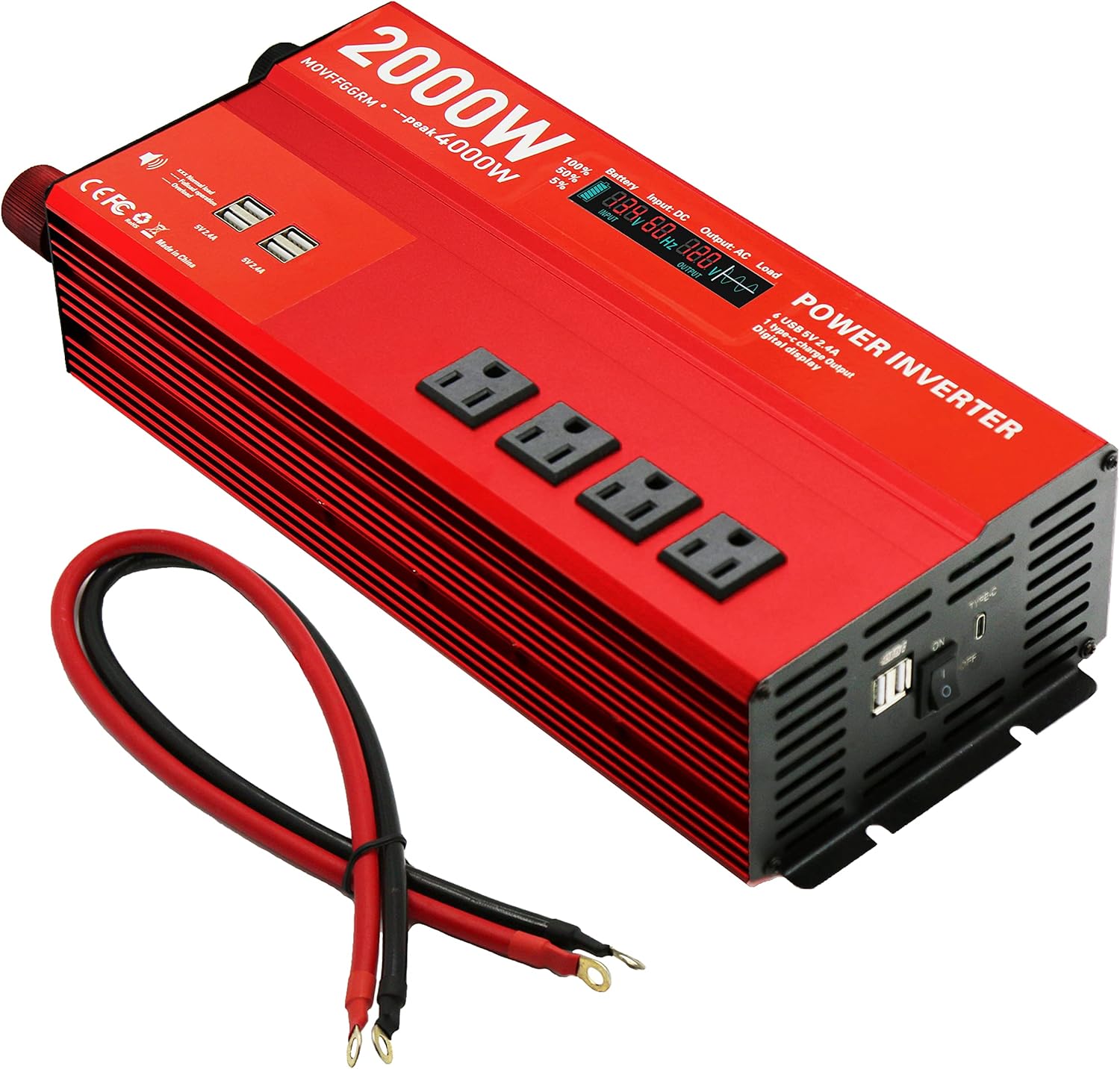 2000W 12V Power inverters for Vehicles,Peak 4000 watt, Car/Truck DC 12V to 110V 4AC Converter, 6 USB 2.4A Ports,with 18W Type-C Quick Charge Port,LCD Digital Display