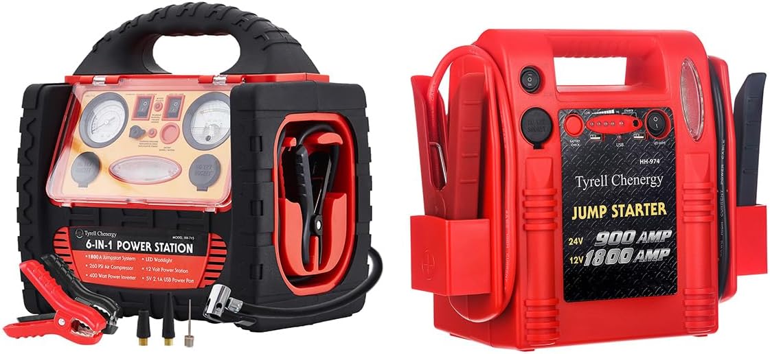 1800 Peak Amp Portable Power Station Jump Starter,Power Inverter Dual AC/DC Ports,2.1A USB Port,Battery Clamps(HH715+HH974)