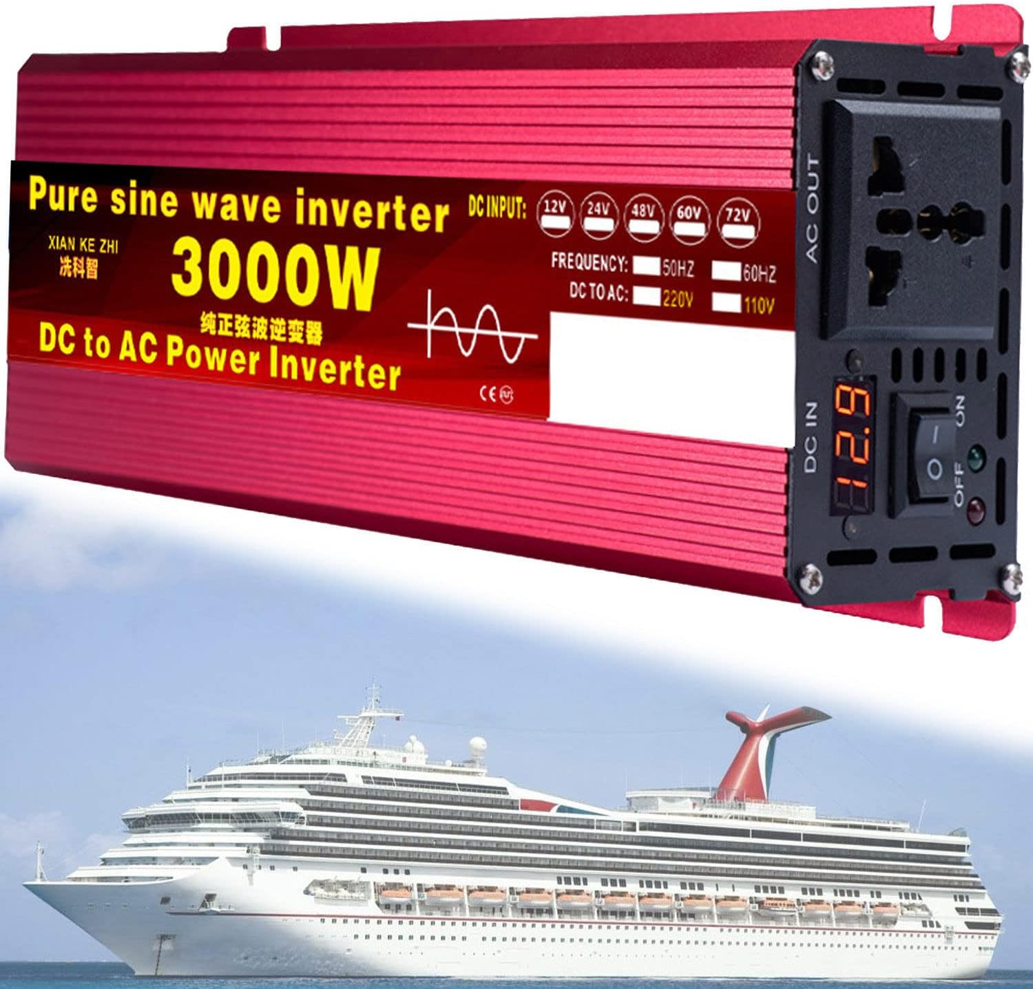 1000W/1600W/2200W/3000W/3500W/4000W/5000W/5500W/6000W/8000W/12000W Pure Sine Wave Power Inverter 12V/24V/48V/60V/72V dc to ac 110V/230V with 2 Socket, LCD Display, for RV,3000W-72Vto110V