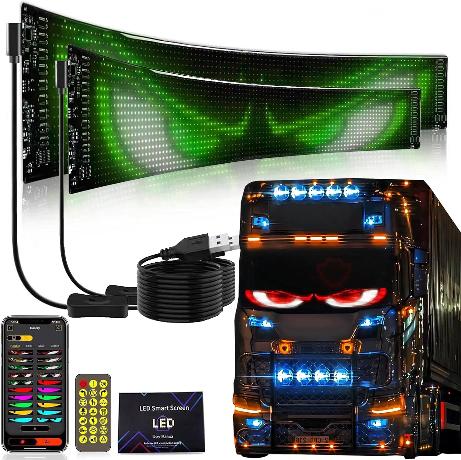 Devil Eyes Light for Cars, Led Eyes for Windshield, Programmable led Sign Custom, APP Control, USB Interface,Suitable for Car and Shop Signs 2PC 69.2×7.4 in/16×192 Pixels