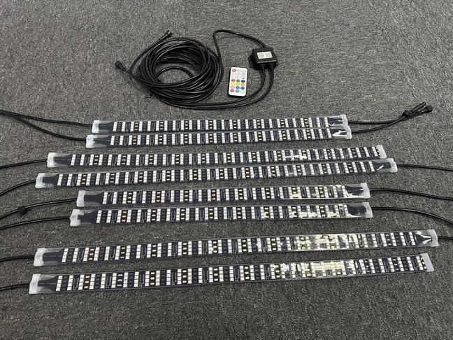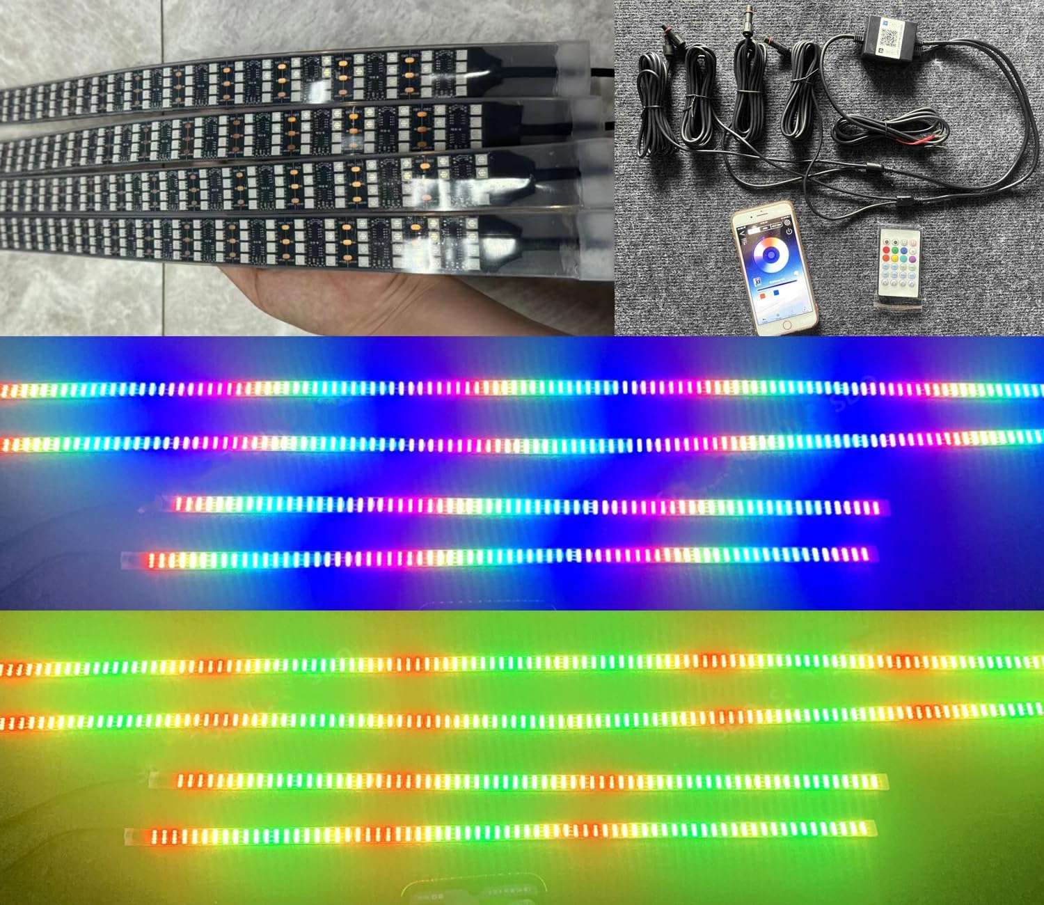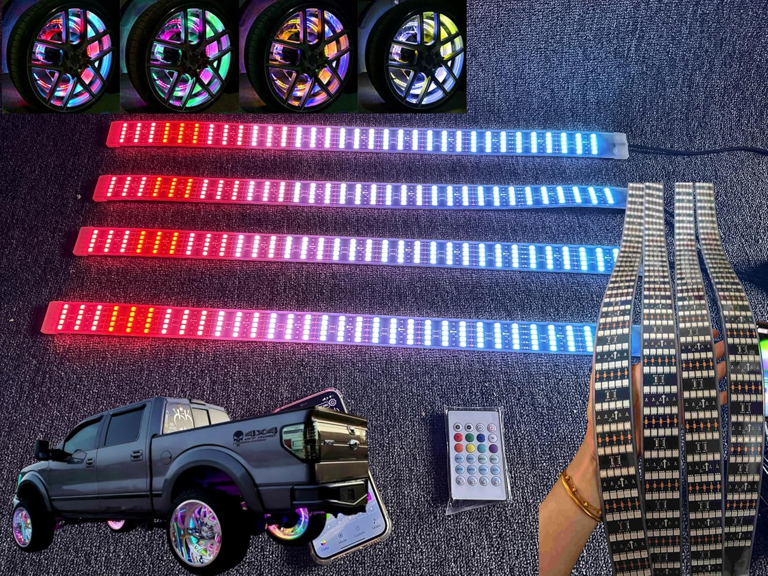 2PCS 4FT +2PCS 6.5FT Quad Row 4Rolls RGB Dream Color Chasing Flow Series LEDs Brightest Light Strips Underglow Underbody Fender Lights Bluetooth Remote Control for Car Truck Vehicle