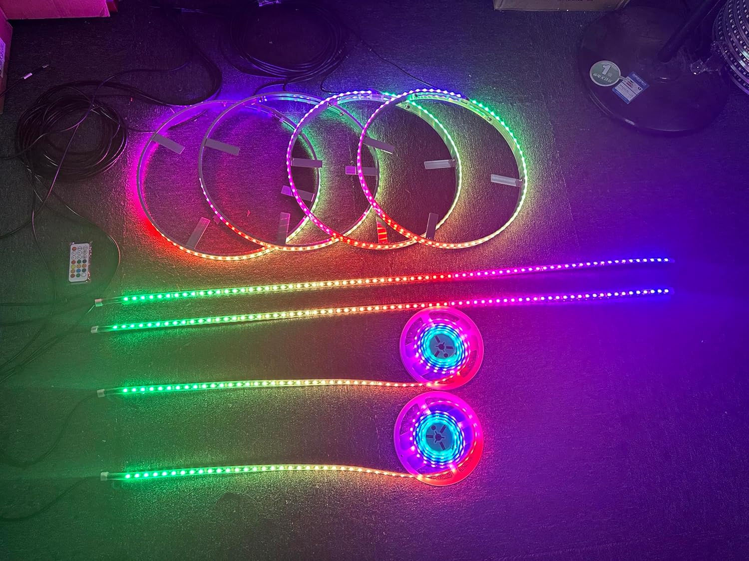 SDO 17.5'' RGB Dream Color Chasing LED Illuminated Wheel Ring Light +2PCS 4FT 2PCS 6.5FT Strip Lights 8Plugs Sync Car Rim Breathe/Flashing Bluetooth & Remote Ctrl (17.5''),(SR-CHASE-8PLUGS)
