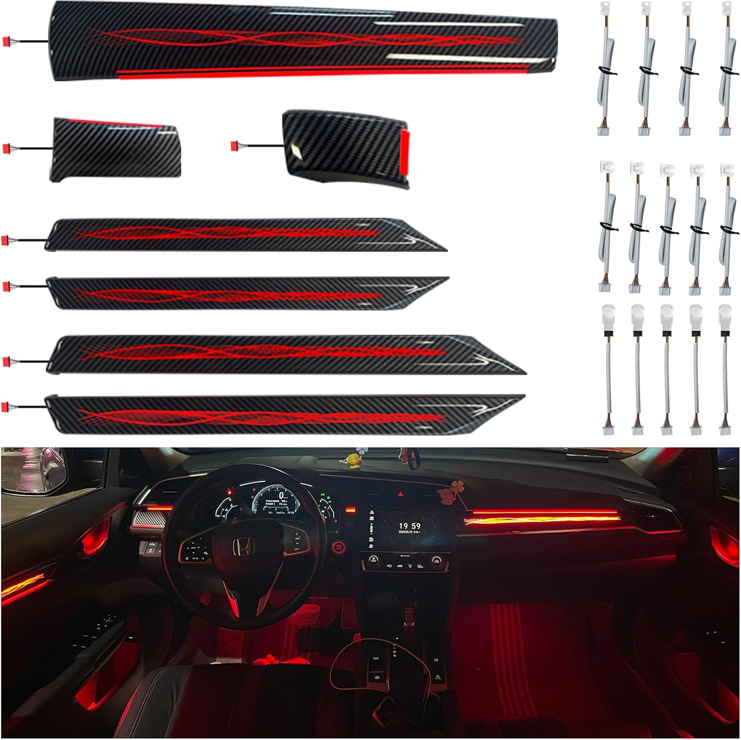 Ambient Lighting Kit Custom for 10th Gen Honda Civic - 256 Color LED Interior Car Lights with Carbon Fiber Trim, APP Control, Plug-&-Play Installation for Doors/Dashboard/Footwell (2016-2021)
